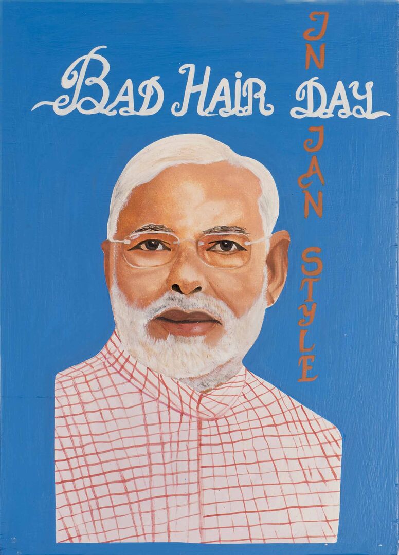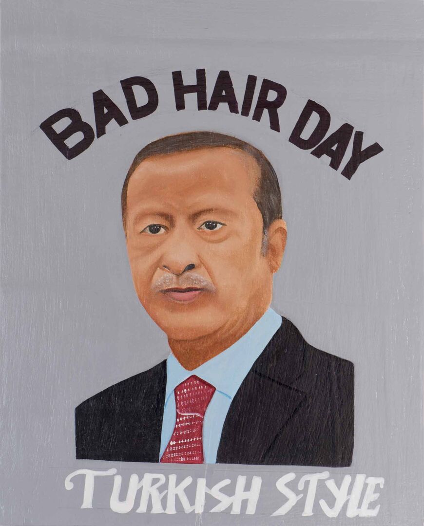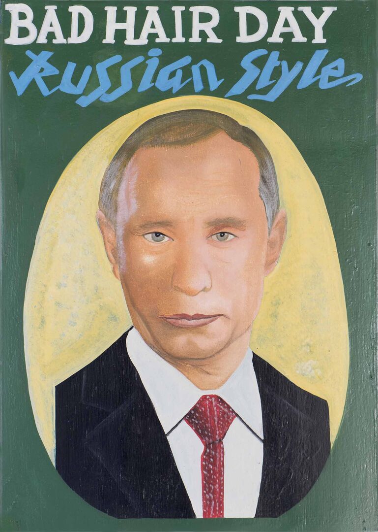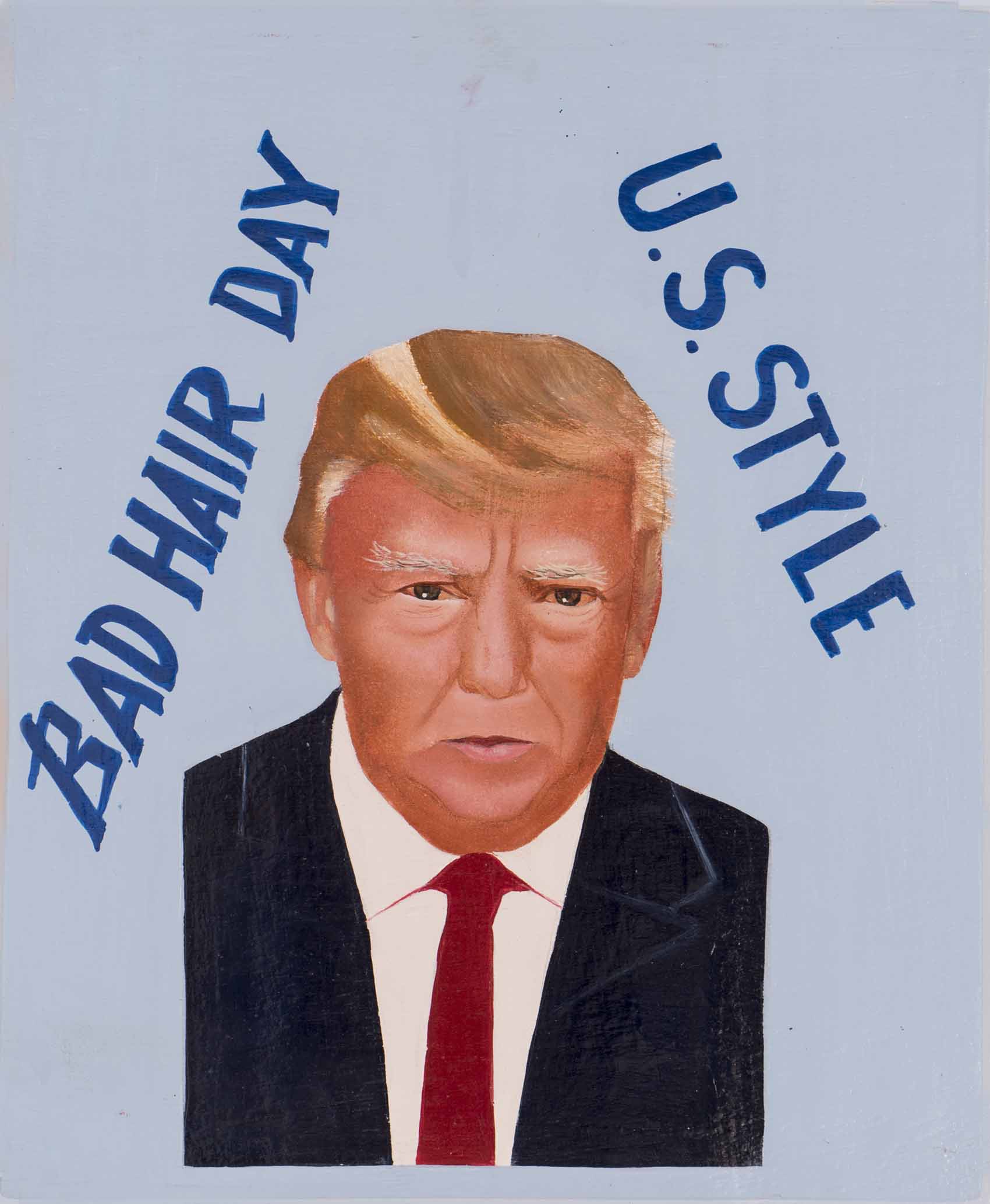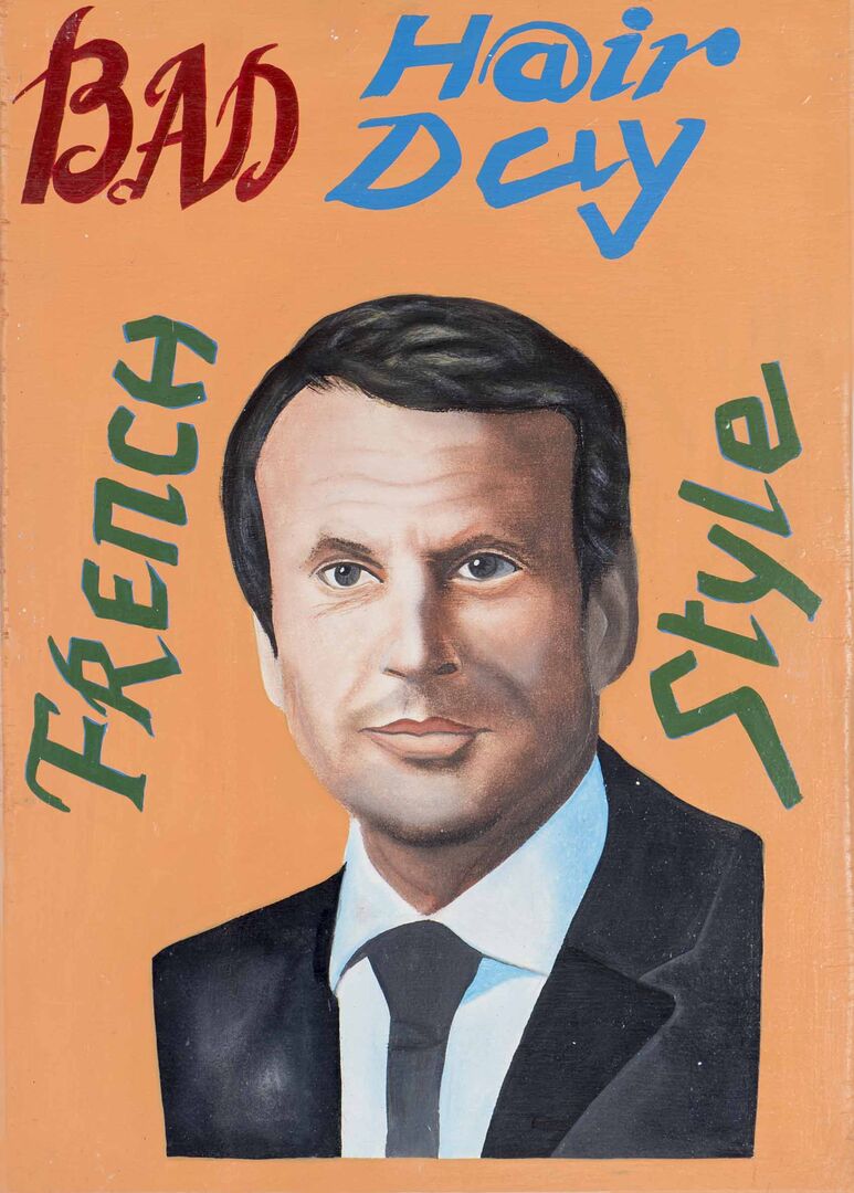 Die Inspiration zu seiner "Bad Hair Day" Reihe fand er in Benin, wo die Werbeschilder von Beautysalons traditionell mit der Hand gemalt sind:
