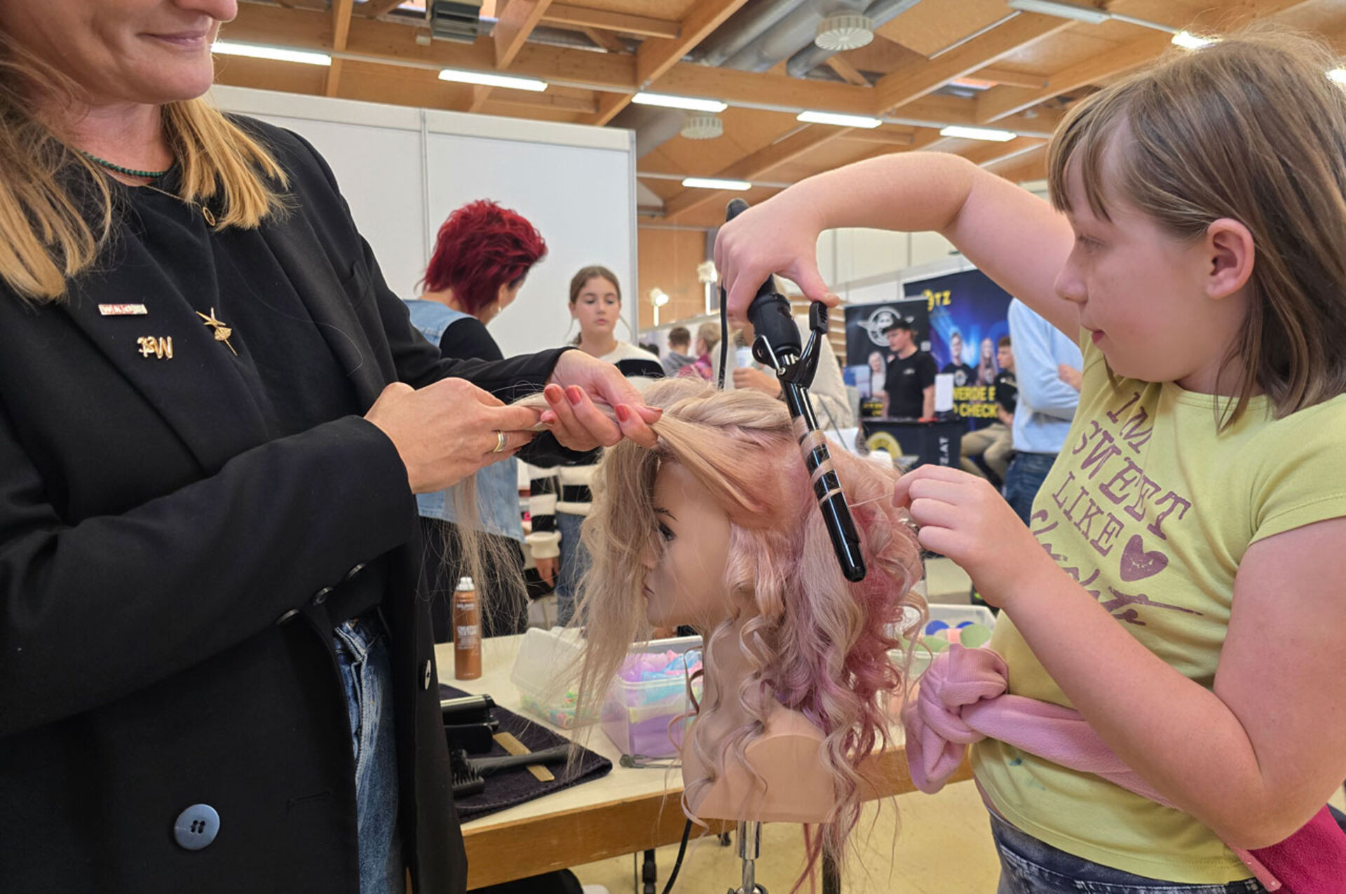 So kamen an diesen drei Tagen Glätteisen und Lockenstab oder auch die altbewährten Wasserwellenwickler zum Einsatz. Fingerfertigkeit war gefragt und die Interessierten konnten gleich selbst Hand anlegen und ihre Talente unter Beweis stellen.