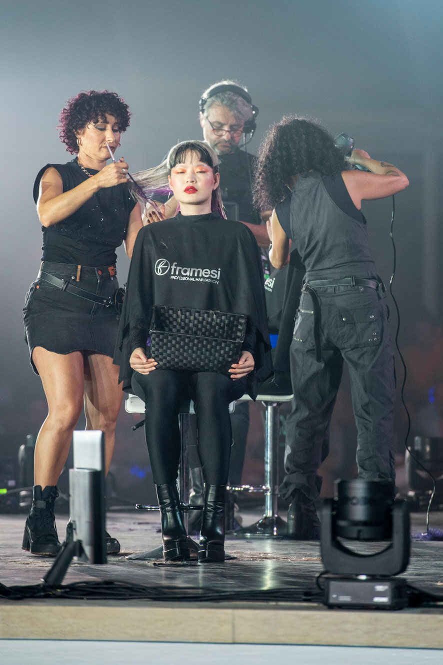 Sieben internationale Stylistenteams begeisterten das Publikum mit einzigartigen Auftritten. Von den Schnitten im italienischen Stil von Italian Style Framesi und Italian Style Energy über den auf der „Skulptur“-Technik basierenden Pinselschnitt von Polverini bis hin zu den avantgardistischen Looks von Valeria Barba war die Show ein Fest der Kreativität und des Talents. Es gab aber nicht nur italienische Beiträge: Neben dem Team von Framesi International, darunter Billy Dogan aus Großbritannien und Jiro Okabe aus Thailand, traten auch Artists aus den USA auf und feierten gemeinsam die modische Vielfalt der internationalen Szene.