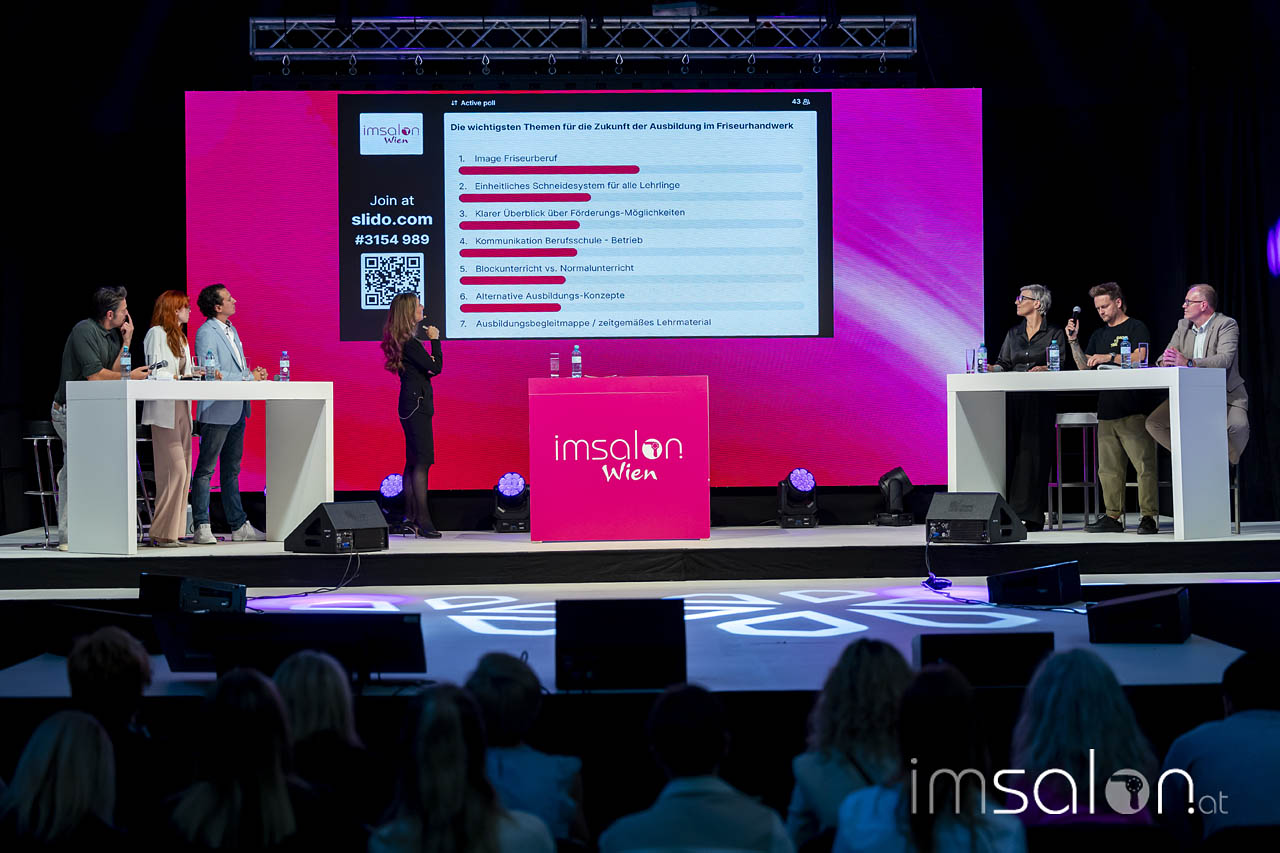 Wenn es das duale Ausbildungssystem nicht mehr gibt, was sind die Alternativen? Zwei Möglichkeiten, wie zum Beispiel die Hairdressing School oder die Modeschule Hallein, wurden auf der Bühne besprochen. Alle stimmen überein: es muss das duale Ausbildungssystem, sowie alternative Konzepte geben – das fordert allein schon die enorme Zunahme der EPUs und nicht ausbildender Betriebe.
