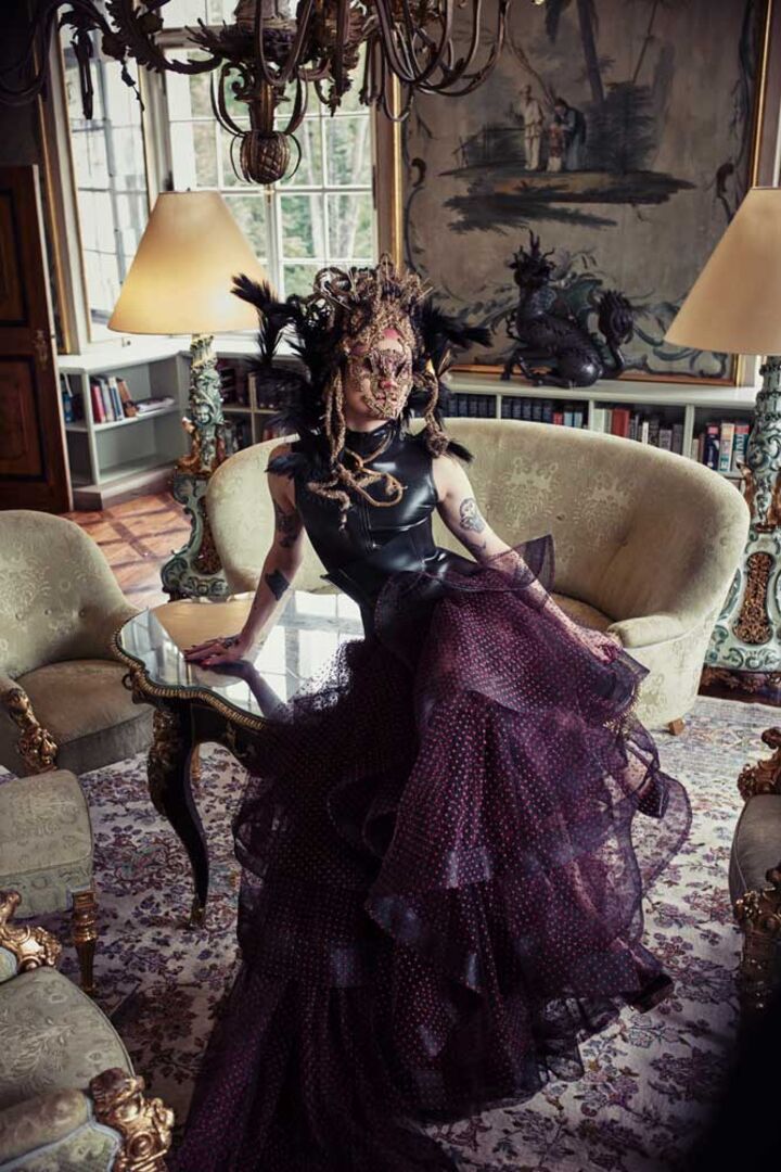 Den Film hat Mario Krankl zusammen mit dem aufstrebenden Filmemacher Daniel Ronacher von Solidshot umgesetzt. Nun folgt der erste Teil der zweiteiligen Fotokollektion aus „Garland & Tinsel“ mit einer Märchenkulisse, der schon Karl Lagerfeld und Chanel nicht widerstehen konnten: das Schloss Leopoldkron in Salzburg. Mario Krankl ist bekannt für seine opulenten Inszenierungen, die ausgehend von den Haaren ein faszinierendes Gesamtbild ergeben. Wer könnte da den „Highfashion Hausherrn“ besser verkörpern als der großartige Make-up-Artist von Björk und selbst Instagram Star @Isshehungry? Die Haute Couture Kleider stammen vom österreichischen Designer-Shootingstar Eva Poleschinksi, deren opulente Red Carpet Roben perfekt in die traumhafte Kulisse passten. Für das Make-up zeigte sich Eva Hauswirth verantwortlich. Mit Friedrich Hauswirth als Director of Photography hatte Krankl ein hochkarätiges Team an seiner Seite.