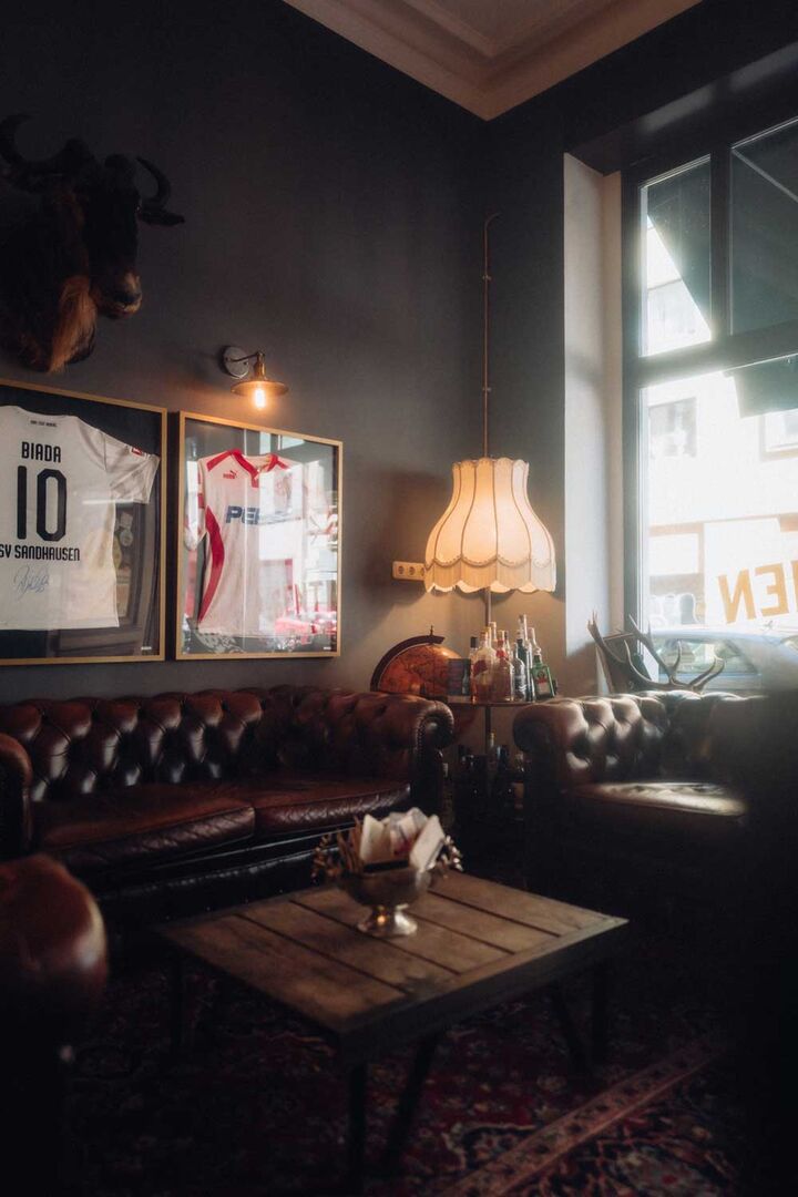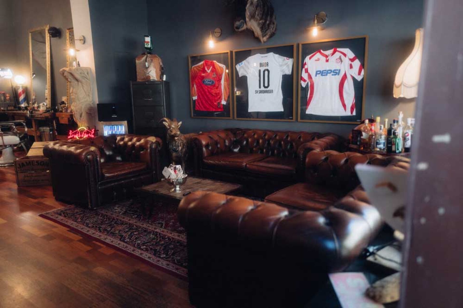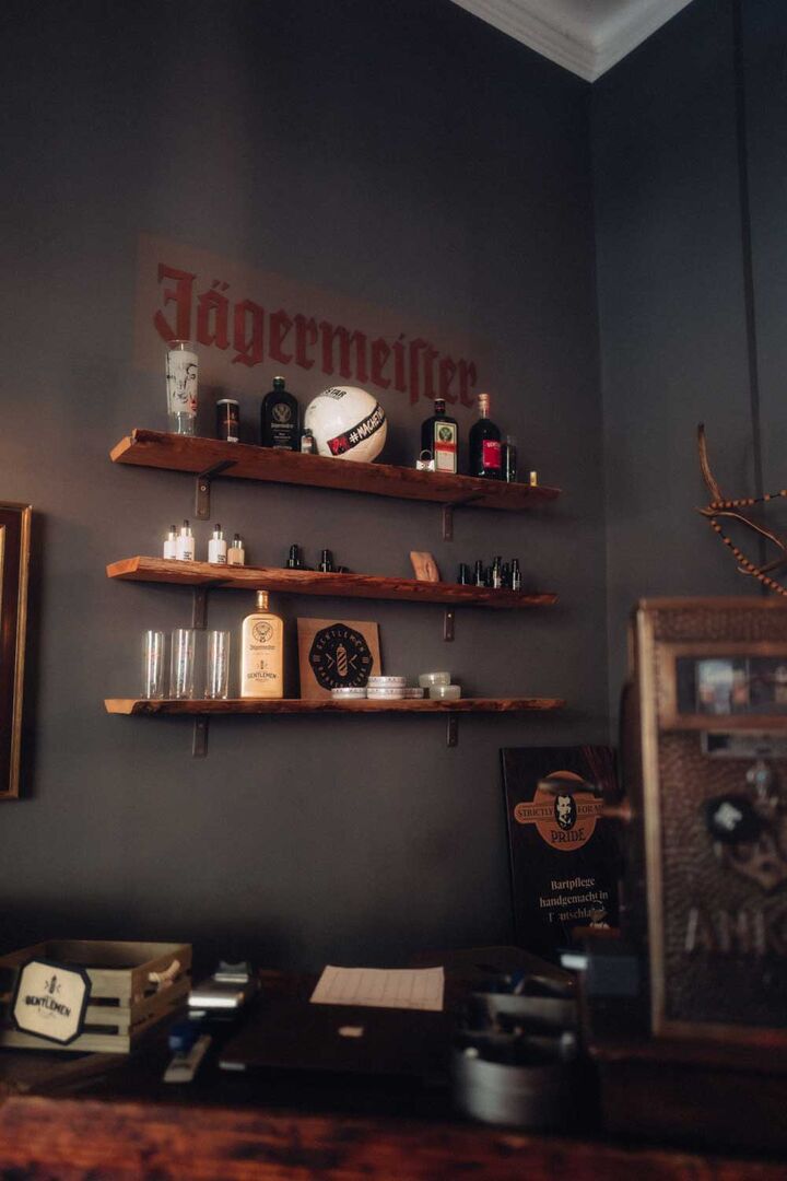 Gentlemen Barber Clubs ist wie ein Zuhause für die Kunden. Vor Corona war der Eintritt in den Salon noch etwas persönlicher: die Kunden kommen an, hängen ihre Jacke selbst auf und begrüßen jeden per Handschlag, auch die anderen Kunden. Dann geht man zum Kühlschrank, nimmt sich ein Bier oder einen Jägermeister und zündet sich eine Zigarette an. Rauchfrei ist nicht, wer den Rauch nicht mag, der ist hier fehl am Platz, denn GBC ist ein Rauchersalon.