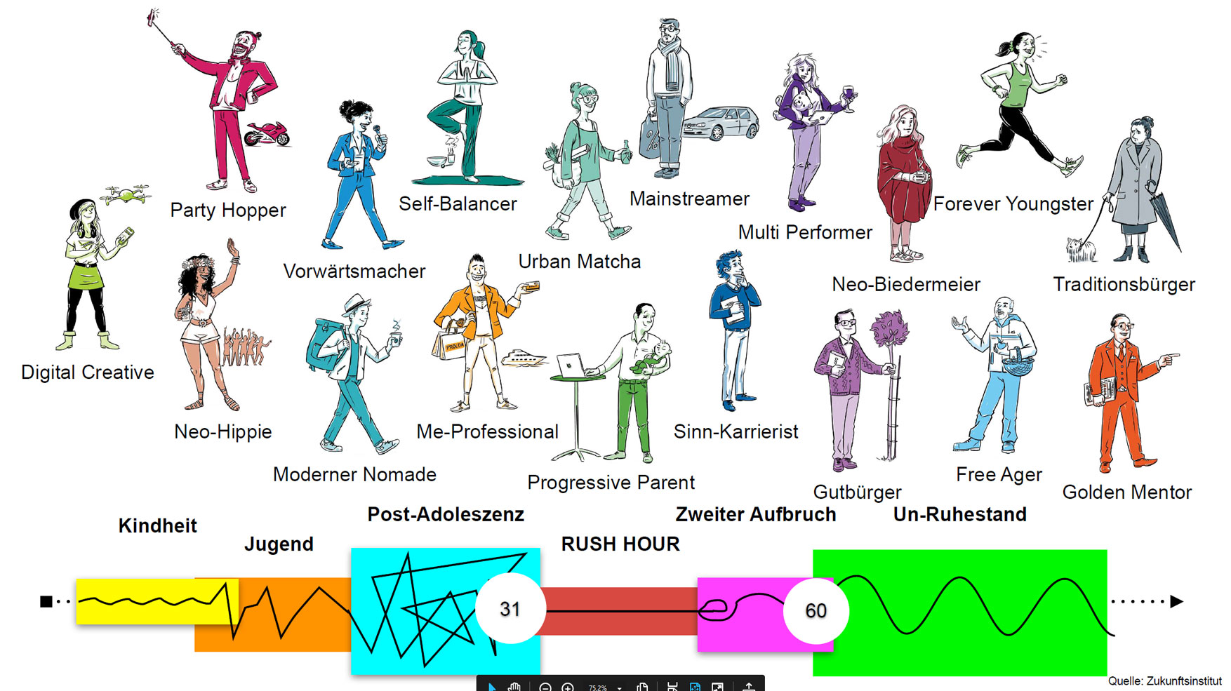 Längst lassen sich Menschen nicht mehr in soziodemografische Muster pressen. Man muss in Lebensstilen denken, wenn es um Kunden geht. Das Zukunftsinstitut hat 18 Lebensstile definiert, in denen sich vielleicht auch deine Zielgruppe tummelt und zielgerichteter bedient werden kann. ► Lebensstile Zukunftsinstitut