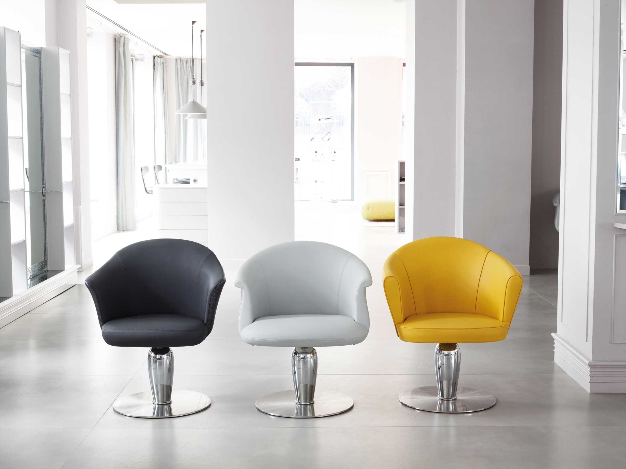 Der Hauptvorteil dieser eher klassisch inspirierten Friseurstuhl-Kollektion besteht in ihrer Vielseitigkeit, dank derer ein Bereich mit Leichtigkeit in angenehmem Gleichgewicht zwischen Moderne und Tradition geschaffen werden kann.
