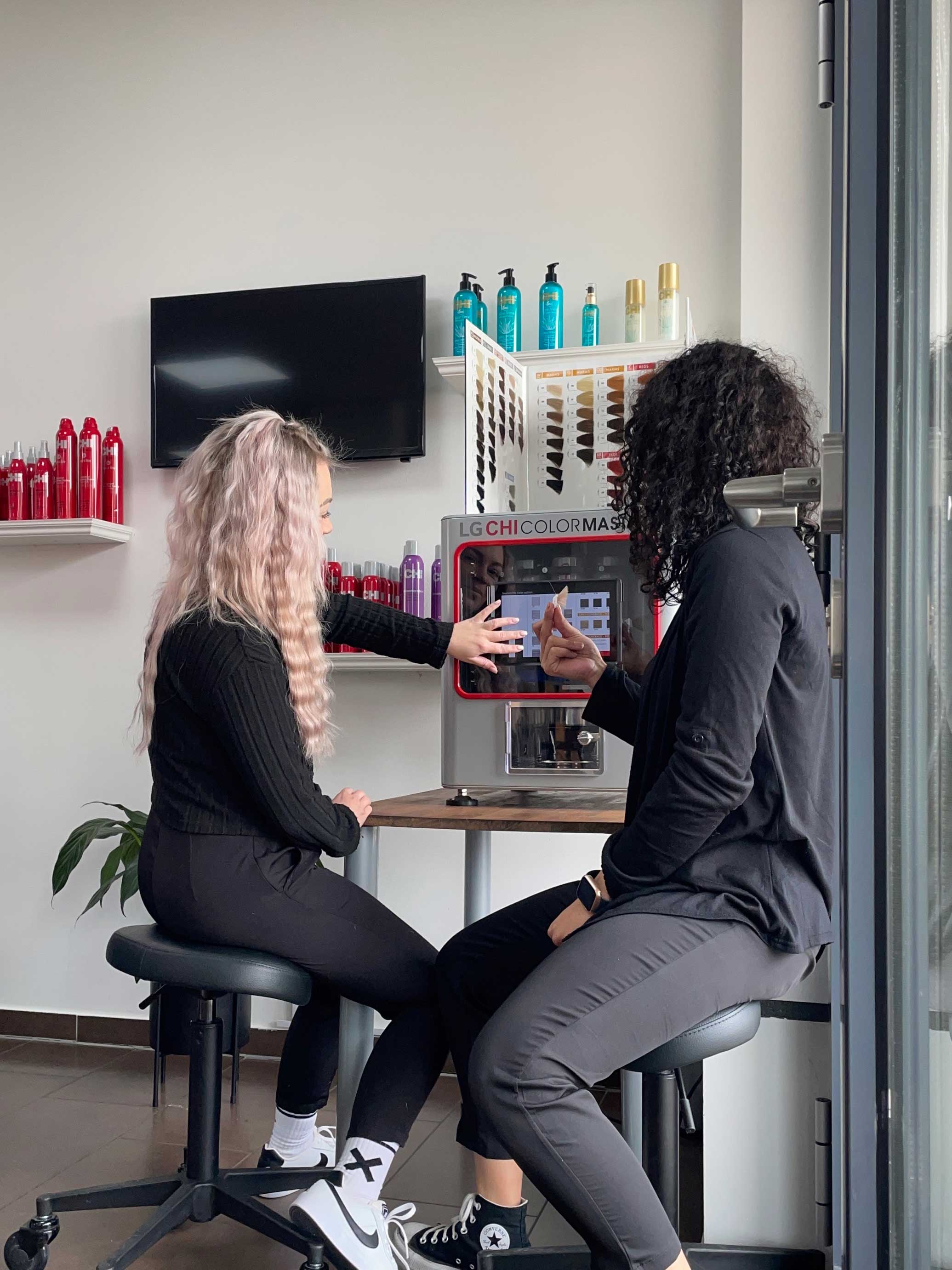 Mona Grill mit dem CHI Color Master beim Beratungsgespräch | Credit: MrXMrsFriseure