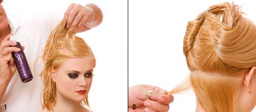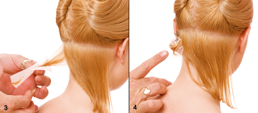 Step 3|4 Im Nacken beginnend einzelne Strähnen papilottieren.