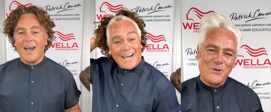 Als Patrick Cameron mehr graue als braune Haare unter seiner Perücke trug, bat er seinen Kreativdirektor Marco Erbi um Hilfe, ihm einen neuen Look zu verpassen. So wurde Patrick Cameron ein Kurzhaarschnitt verpasst und die restliche Farbe aus den Spitzen in mehreren Sitzungen sanft entfernt und mit einem Pearl Blonde perfektionert.