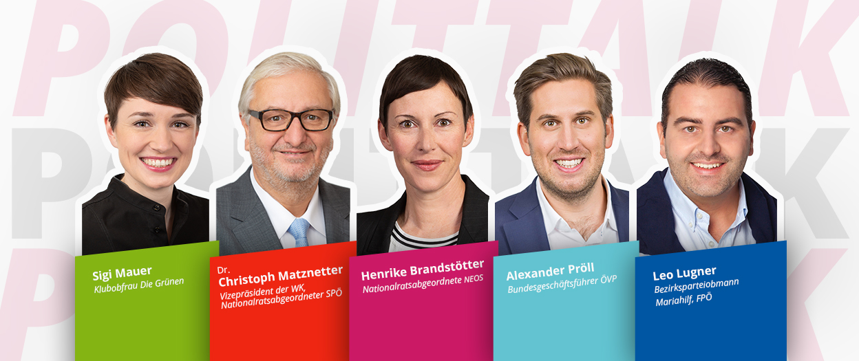 Sigi Maurer (Die Grünen), Dr. Christoph Matznetter (SPÖ), Henrike Brandstötter (NEOS), Leo Lugner (FPÖ) und Alexander Pröll (ÖVP) stellen sich den Herausforderungen der Friseurwelt und diskutieren mit uns und euch auf der imSalon Wien ...
