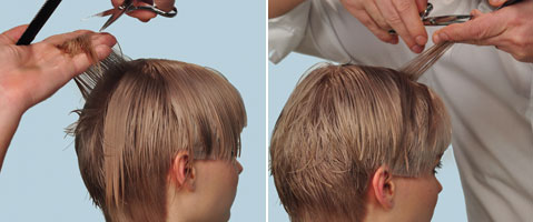 Step 4-7 | Der zweite Abstufungsbereich wird genau mit der Technik des unteren Bereiches geschnitten.