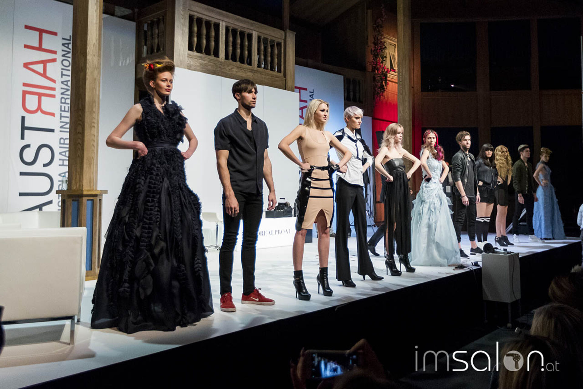#LOREALPROAT prangte in großen Lettern auf der Bühne, Bertrams Thema des Tages: Digitalisierte Vernetzung mit Freunden, Kunden & Gleichgesinnten; wertvolle Tipps vom Fotoprofi inklusive und die Aufforderung, die Show zeitnah in social Media zu posten. Das war es auch, was Publikum und Modelle auf der Bühne taten.