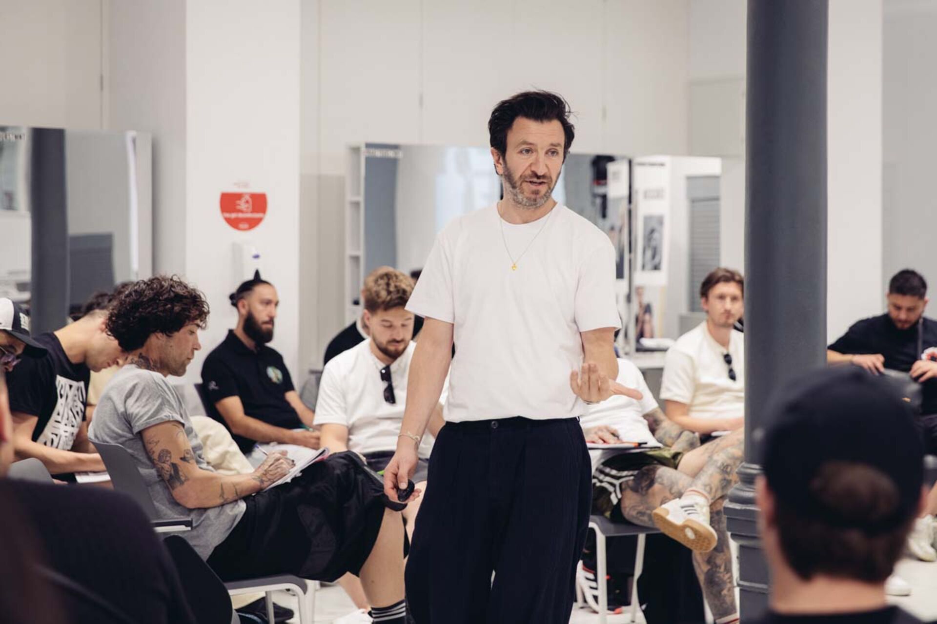 Baggy Hosen, Mützen, Caps, Tattoos, große Sonnenbrillen – das gab es beim STMNT Summit in Barcelona viel zu sehen. Was es sonst Spannendes zu entdecken gab? Im Austausch mit der STMNT Community fiel im Zusammenhang mit Trends häufig die Wörter „Mullet“ und "Male Grooming".  Aber auch Mittelscheitel, Wolf Cut, Locken (egal ob Natur oder Dauerwelle) hörte man oft.
