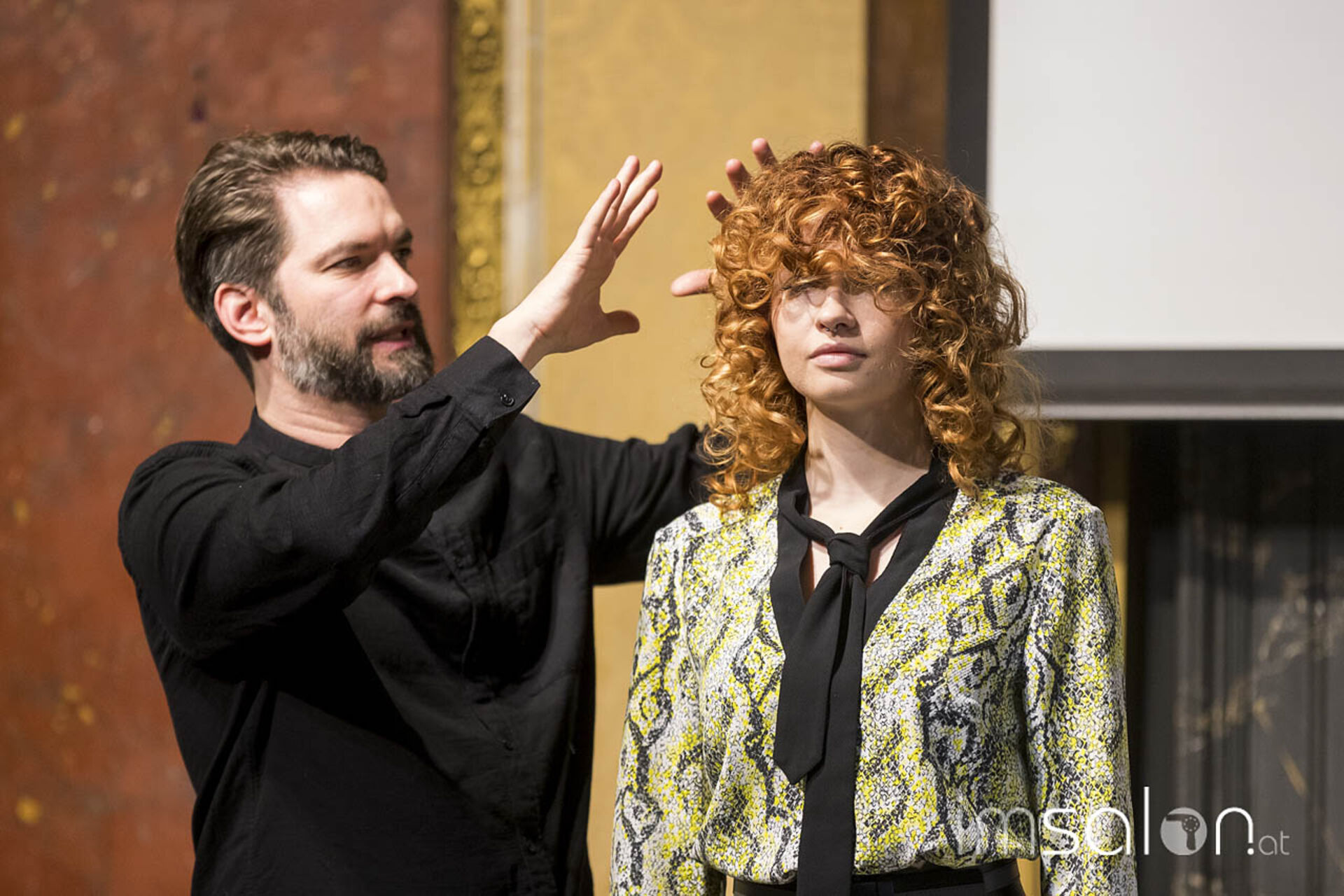 Auf der Bühne: Alex Socher und Jürgen Schwaiger, Toni&Guy Wien und George Mathers, Toni&Guy International Art Director, GB