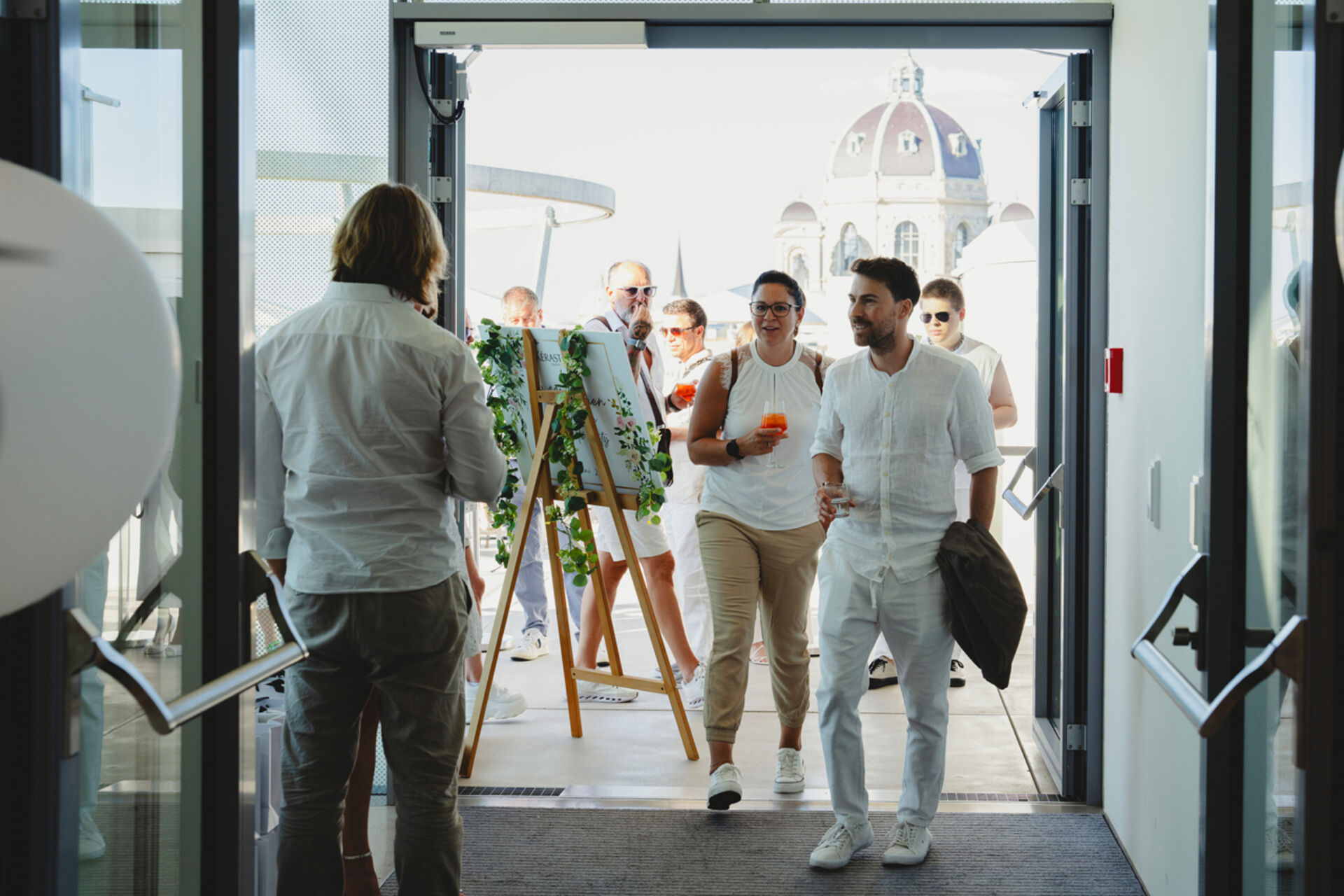 Mit Blick auf historische Kulisse, bei sommerlichen Temperaturen, blitzblauem Himmel und ganz in Weiß, ließ es sich gut festlich sein. Die Stimmung war fröhlich gelassen und ein Powerprogramm bildete die Grundlage für den feierlichen Abend.