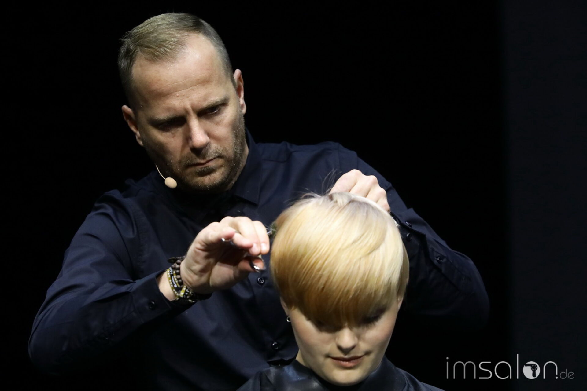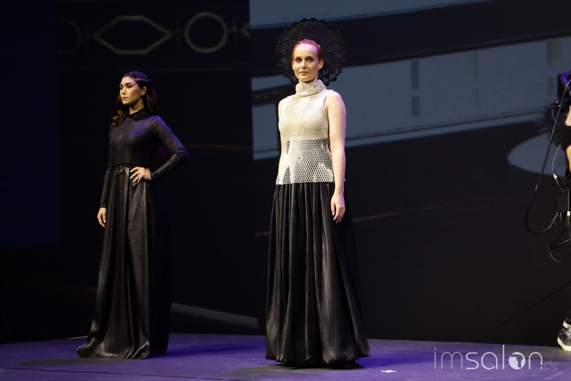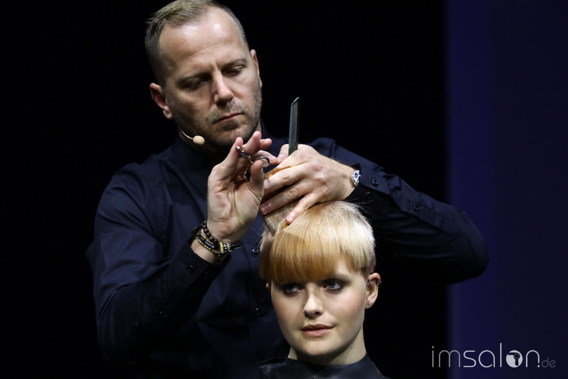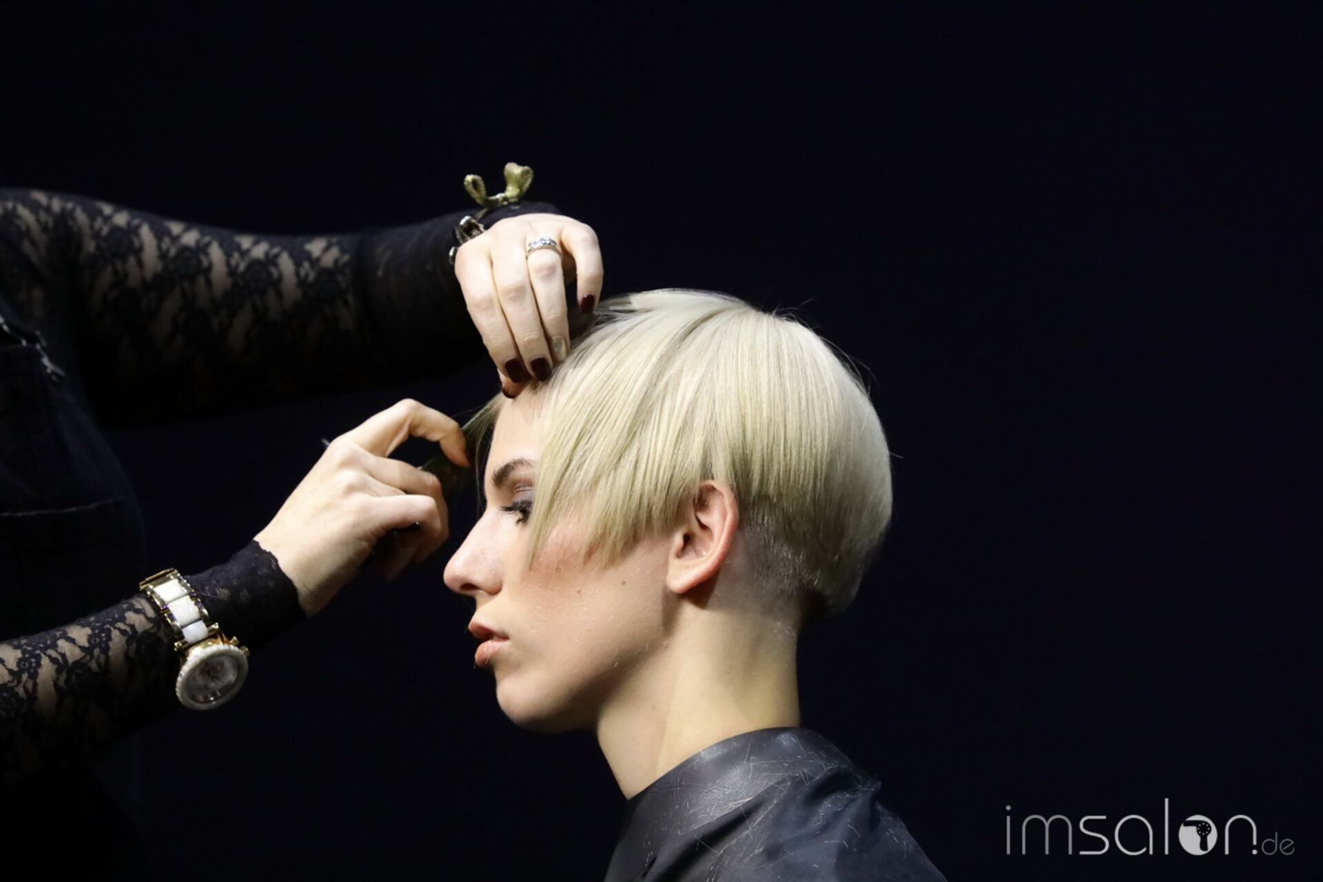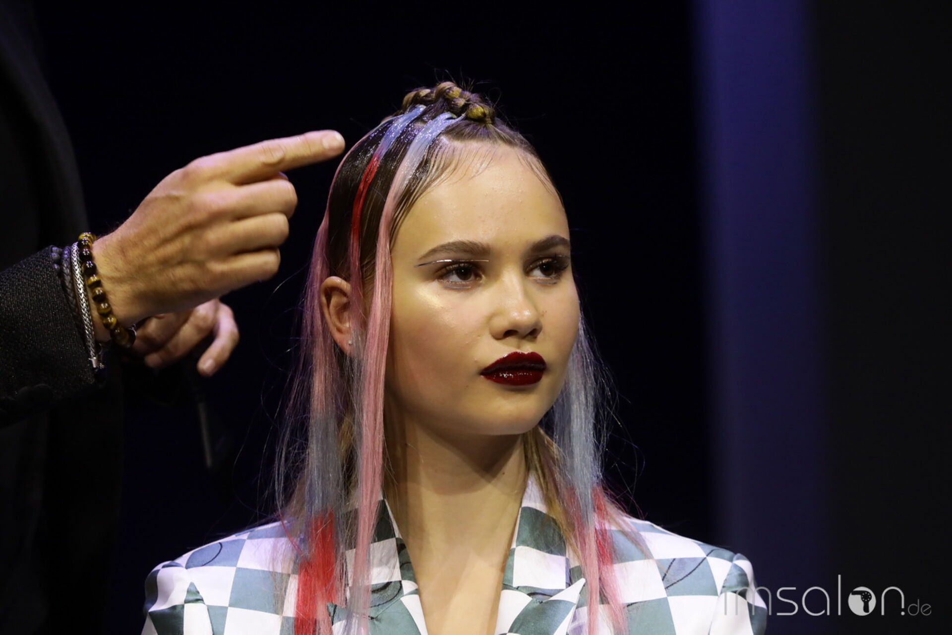 Davines‘ National Trainer setzt auf modernen Royalismus und nennt es Dutch-ess. Handwerk in Haar und Materialien stehen im Mittelpunkt, die Bühnenkulisse im ziemlich beeindruckenden I-Max Theater führt in royale Salonkammern.