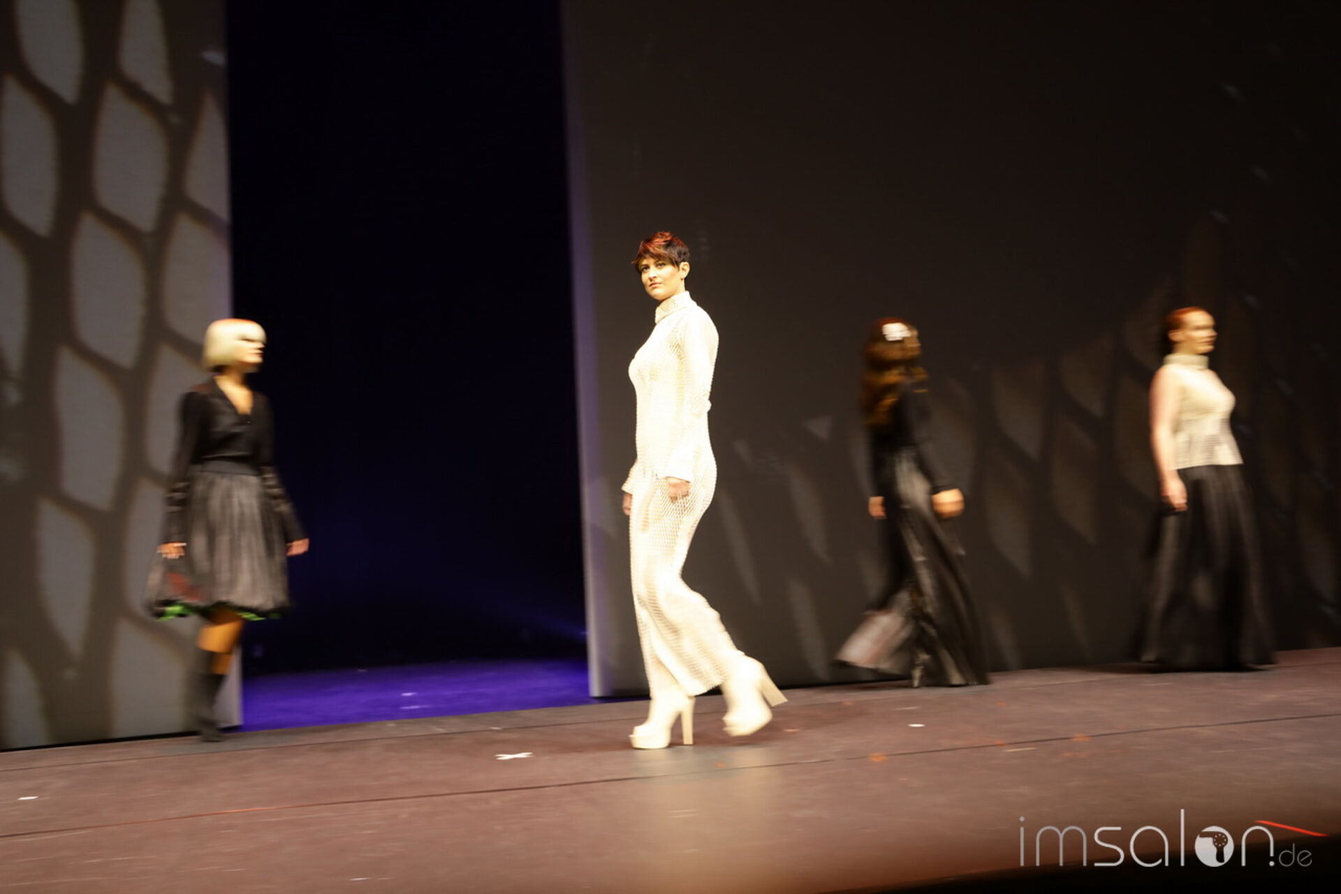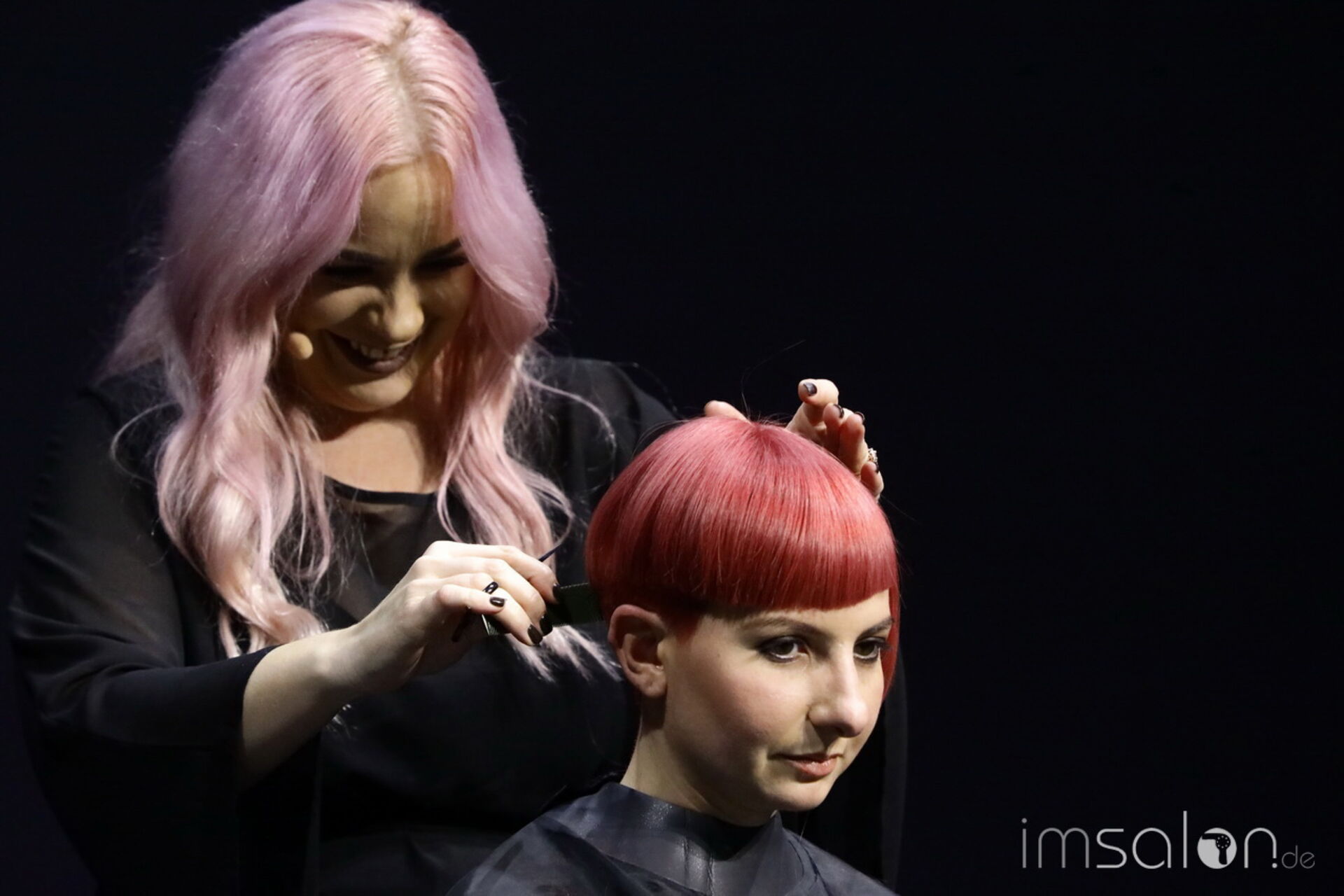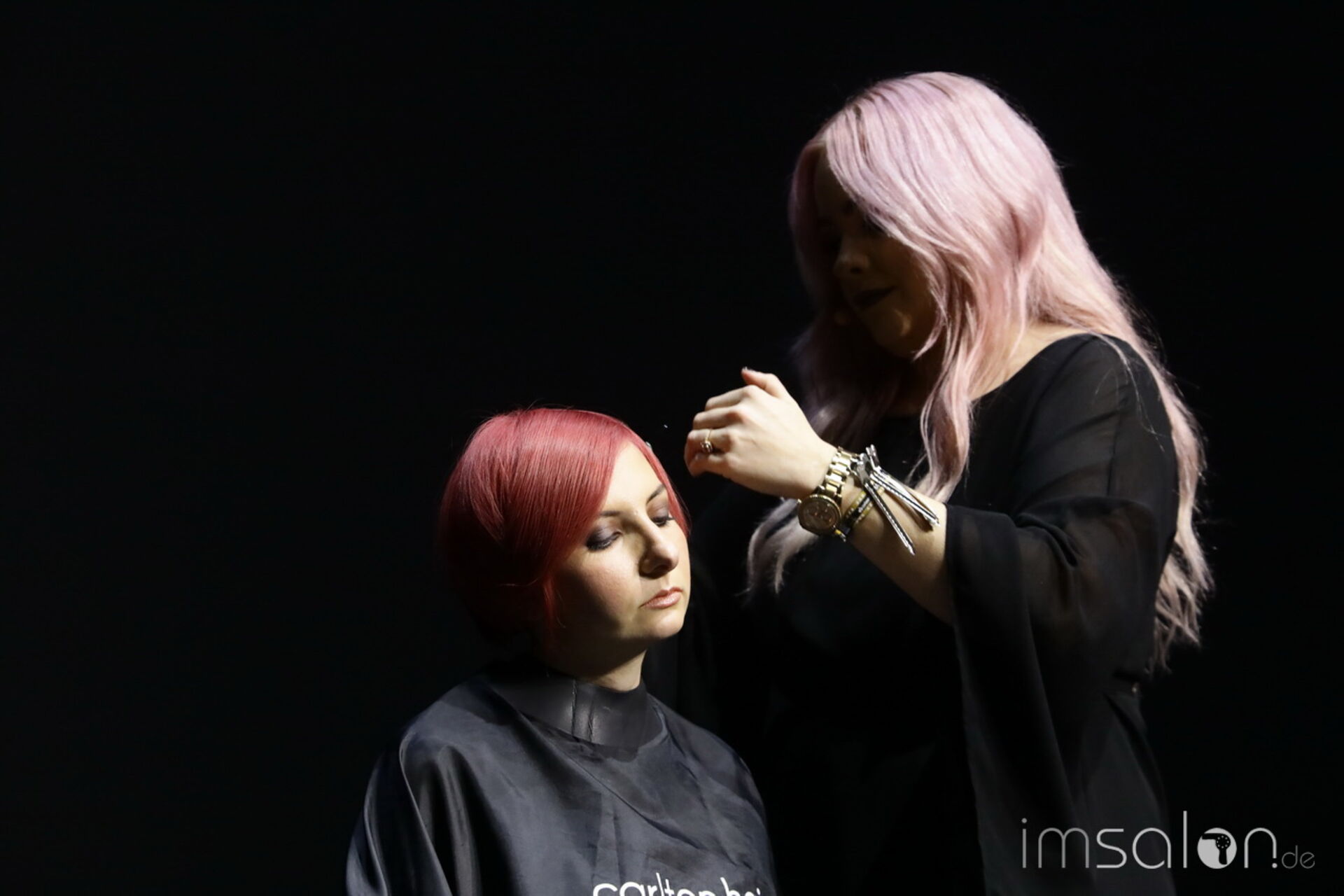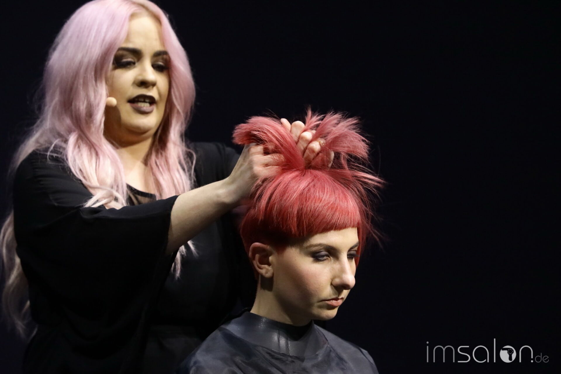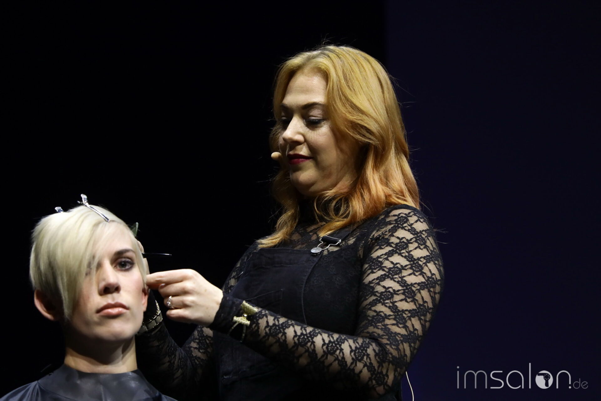 Davines‘ National Trainer setzt auf modernen Royalismus und nennt es Dutch-ess. Handwerk in Haar und Materialien stehen im Mittelpunkt, die Bühnenkulisse im ziemlich beeindruckenden I-Max Theater führt in royale Salonkammern.