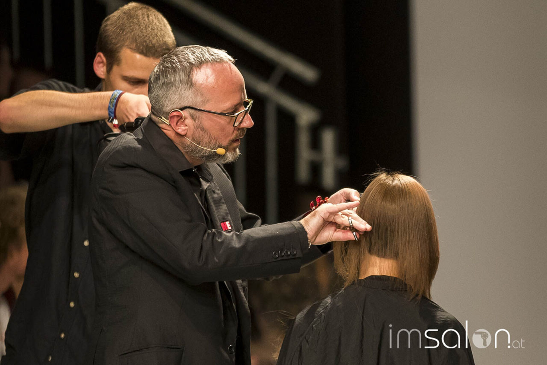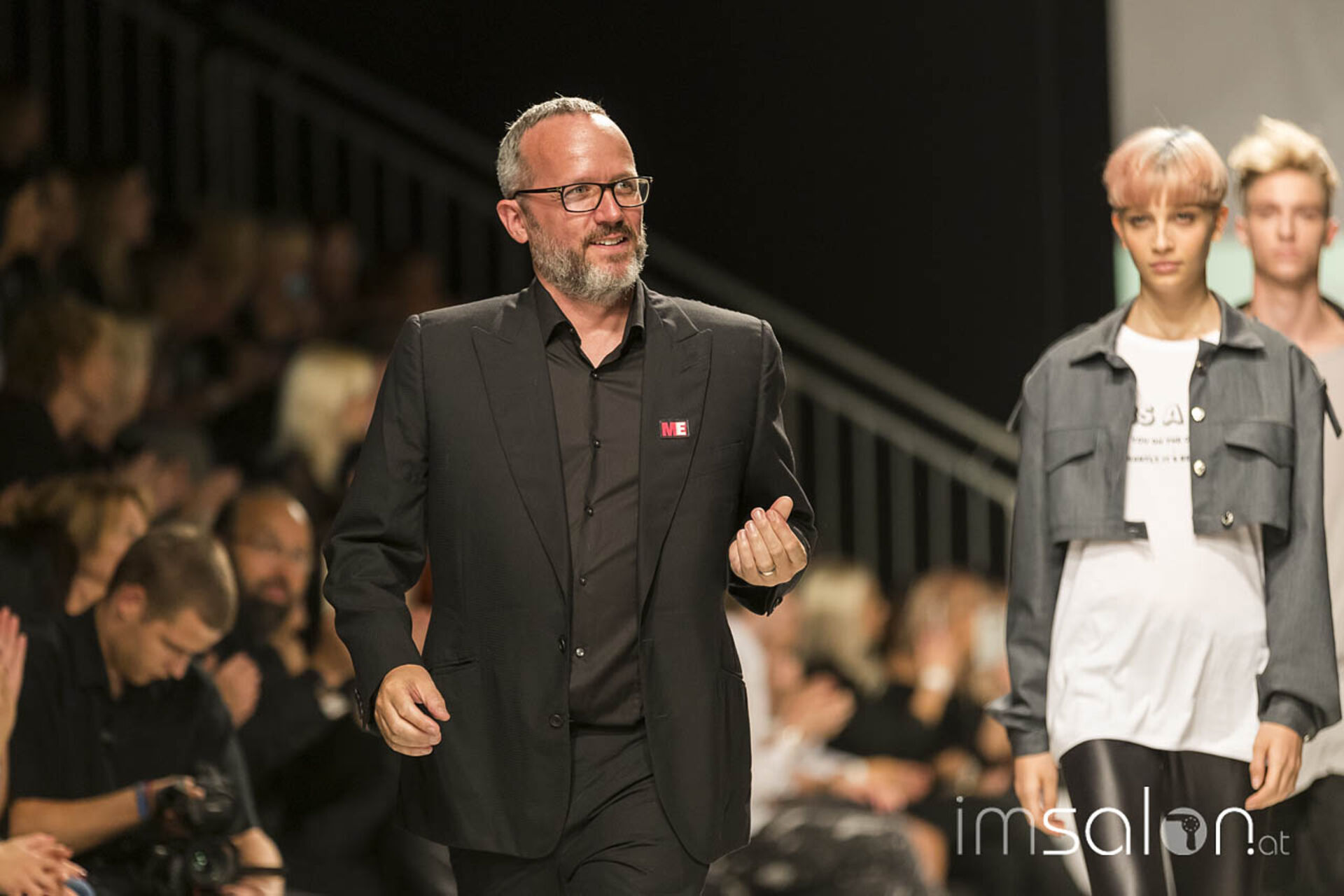 "Kundinnen wollen nach dem Friseurbesuch immer gerne anders aussehen, aber dennoch nichts verändern, ja nicht mehr als Spitzen abschneiden... Wer kennt das?", begann Marco Arena seine Show. Die Hände der anwesenden StylistInnen gingen auf der Stelle nach oben - im gesamten Fashion-Zelt.