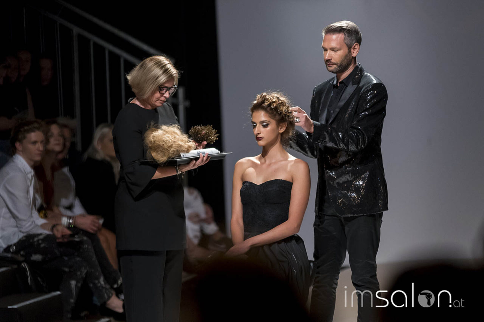 Opulent, pompös und prunkvoll waren die Frisureninspirationen des Franzosen Frédéric Pavard. "High Hair", viel Volumen und Toupage zogen sich durch seine Styles des Abends, ergänzt durch prächtig, glitzerndem Kristallhaarschmuck, der sein Revival feiert. Ein großes Thema für die neuen Hochstecktrends sind Wasserwellen, in allen Größen und Formen - Frédéric Pavard kreierte einen Allover-Wasserwellen-Dutt. Fasziniert von seiner Art, mit welch Leichtigkeit und Schnelligkeit er seine Haarkreationen an den Models anfertigte, kann man nur sagen "Très chic!"