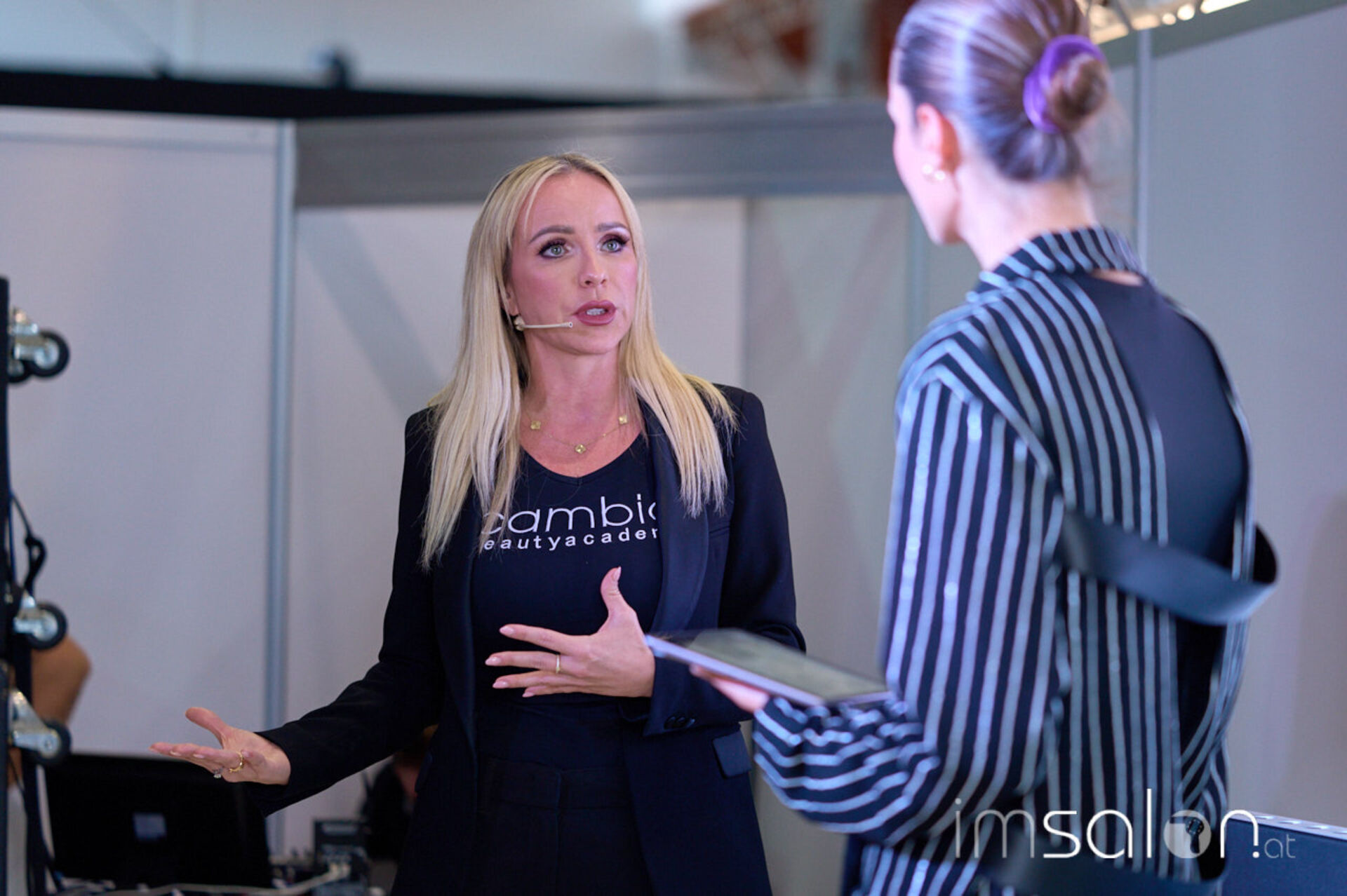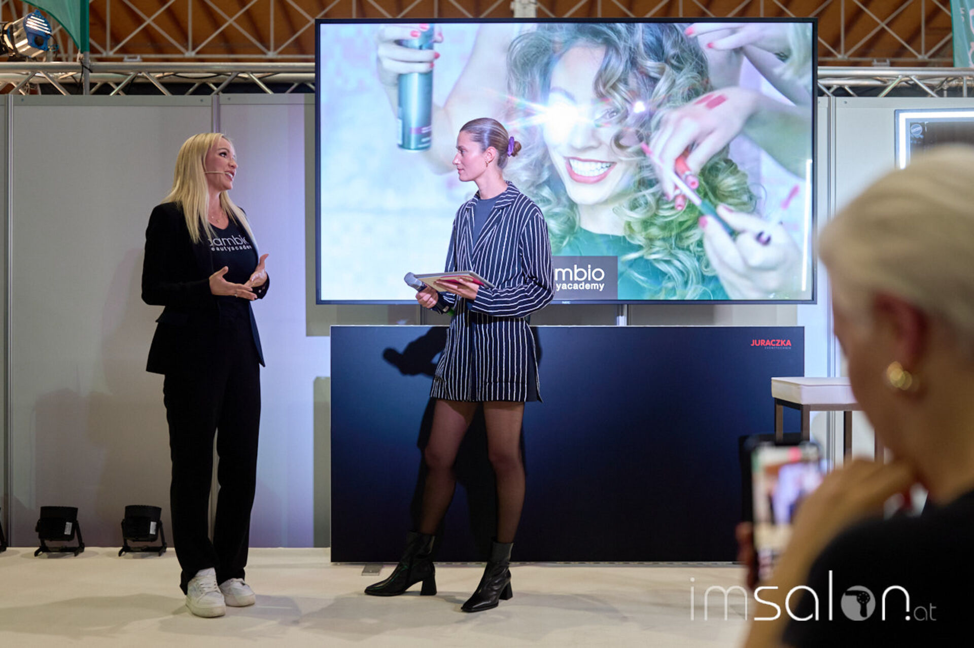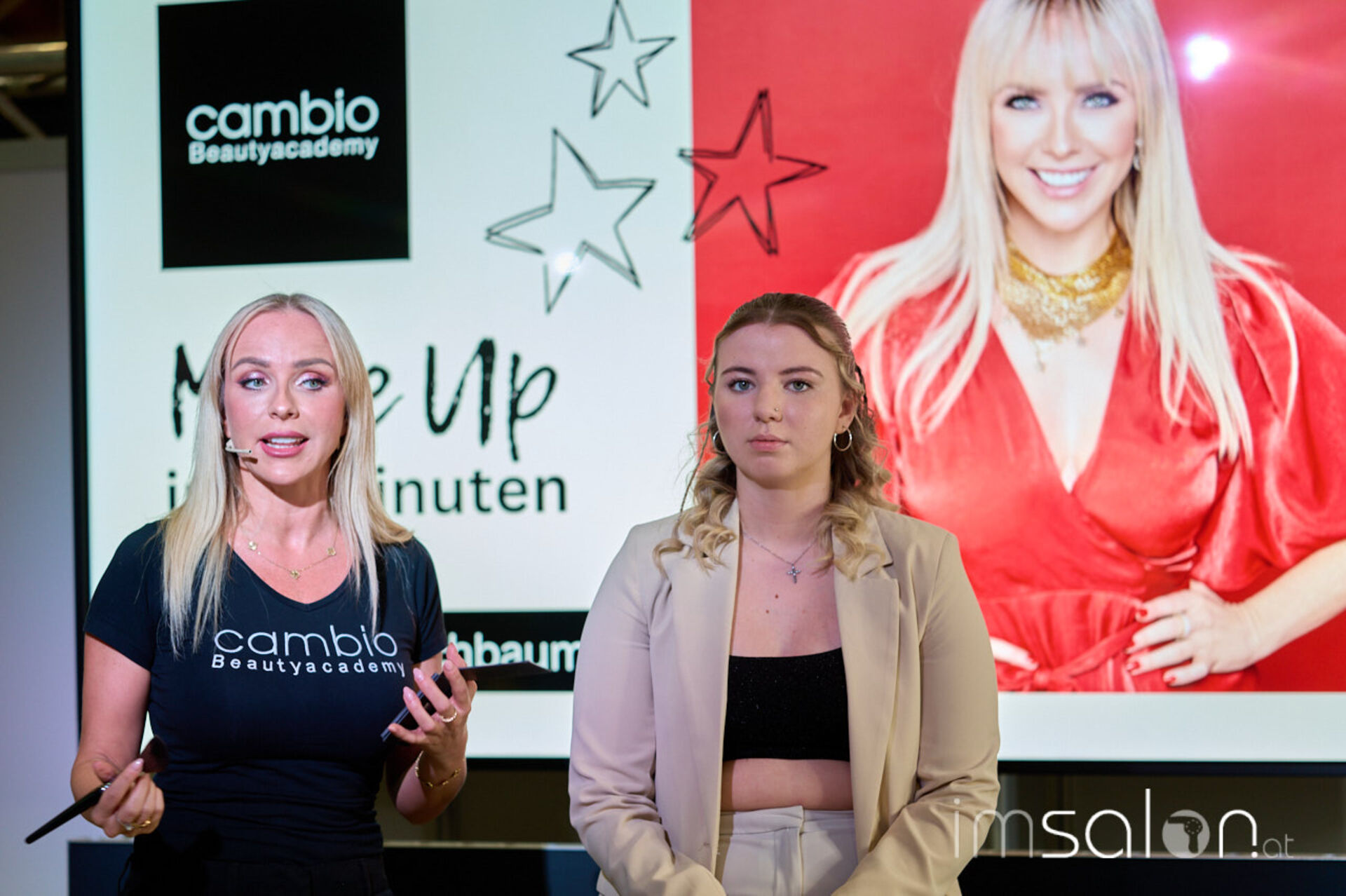 Im Interview auf der Workshopbühne beleuchtet die Gründerin der Cambio Beautyacademy, Claudia Kriechbaumer, den It-Beruf Make-up Artist aus der Nähe. Seit 11 Jahren am Markt und mehreren Standorten in und um Österreich greift man hier auf einen großen Erfahrungsschatz zurück. Die Friseurbranche ändert sich, die Make-up-Branche und die Friseure rücken näher zusammen. Bei Cambio bietet man entsprechend Ausbildungen für Friseurinnen und Friseure an, aber auch ein Kooperationskonzept mit Sturmayr Coiffeure mit einem eigenen Lehrgang für Lehrlinge.