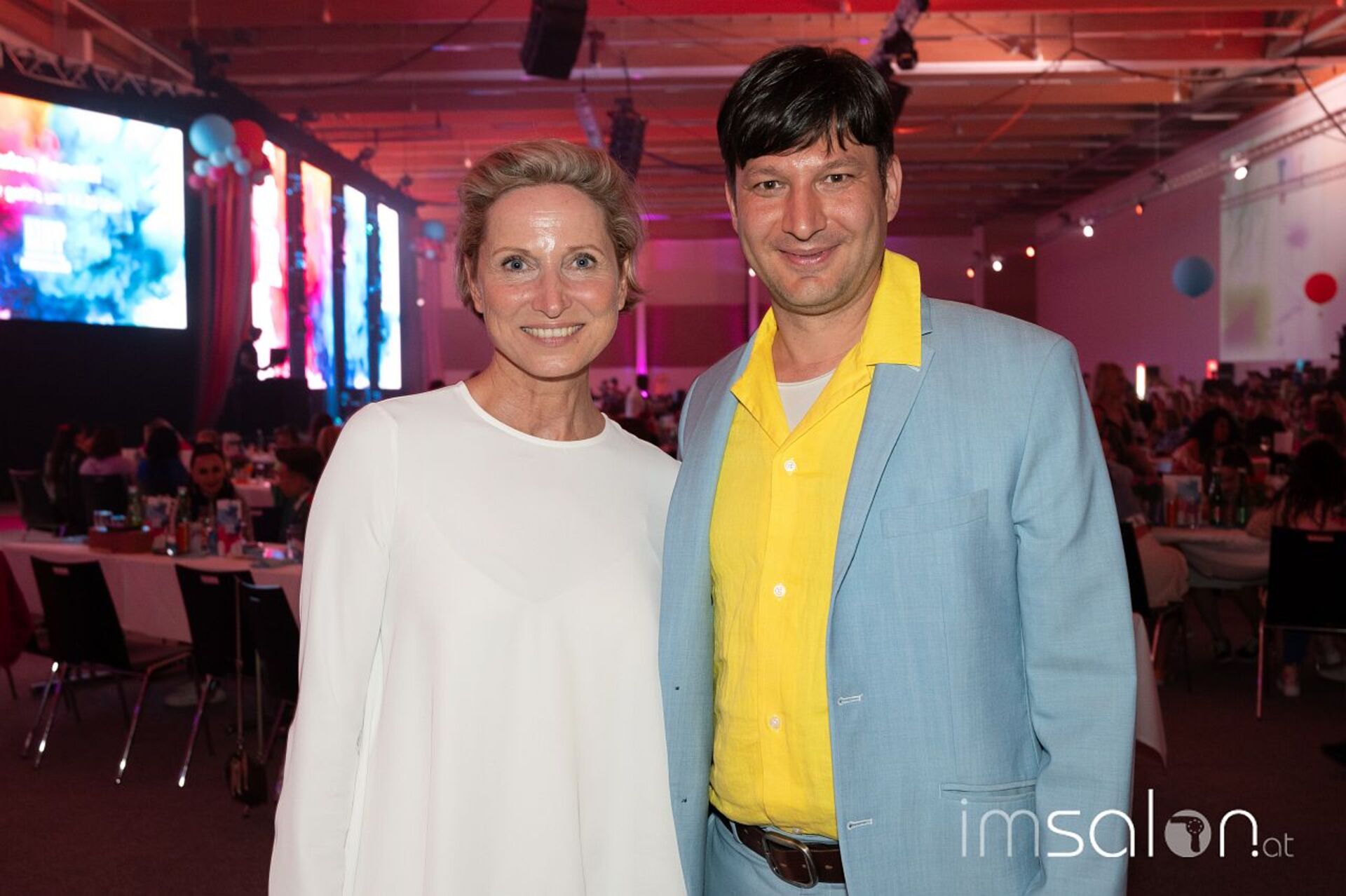 Gemäß dem Festvial-Motto ging es farbenfroh zu, von der Ausstattung der Messehalle, über die Bühnenshows bis hin zu Outfits der Teilnehmenden. Schöne Sachen haben wir da gesehen, vor allem aber sehr viele gut gelaunte Mitarbeiterinnen und Mitarbeiter, in deren Mitte stets Platz für Ewald Lanzl und Gottfried Kraft, die beiden Geschäftsführer des Traditions-Familienunternehmens Klipp Frisör, ist. Und die haben gemeinsam mit ihrem Team mächtig aufgefahren: Ehrungen aller Mitarbeitenden ab 10-jähriger Zugehörigkeit, Mehr-Gänge-Menü, akrobatische Showacts, Hairshow von und mit Mario Krankl und last but not least ein Daniel Golz, der moderierend durch den Tag führte.
