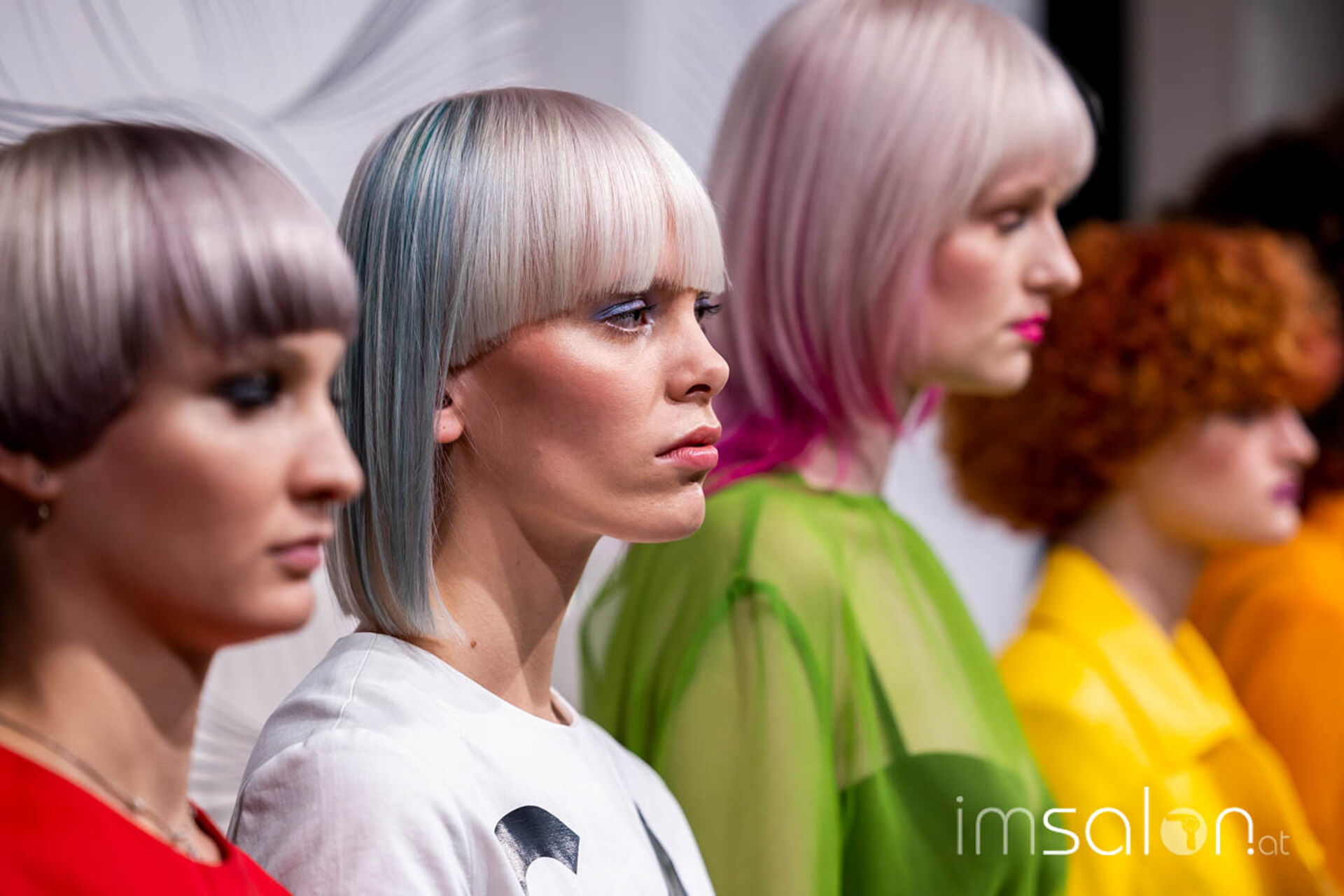 Für die mehrdimensionale Farbwirkung setzt das Kreativteam auf die ganze Bandbreite der Sassoon Techniken – klassische Highlights, Slices, Kammsträhnen, extravagante Tigerstreifen oder geometrische, avantgardistische Halo- und Spiralformen. Es dominieren Anthrazit-, Blond-, Schokoladen- und Weißtöne, aber auch kräftiges Rot, Kupfer und Pink weben sich auf präzise Weise ineinander. Die Farbapplikationen sind so individuell wie ihre Trägerinnen.