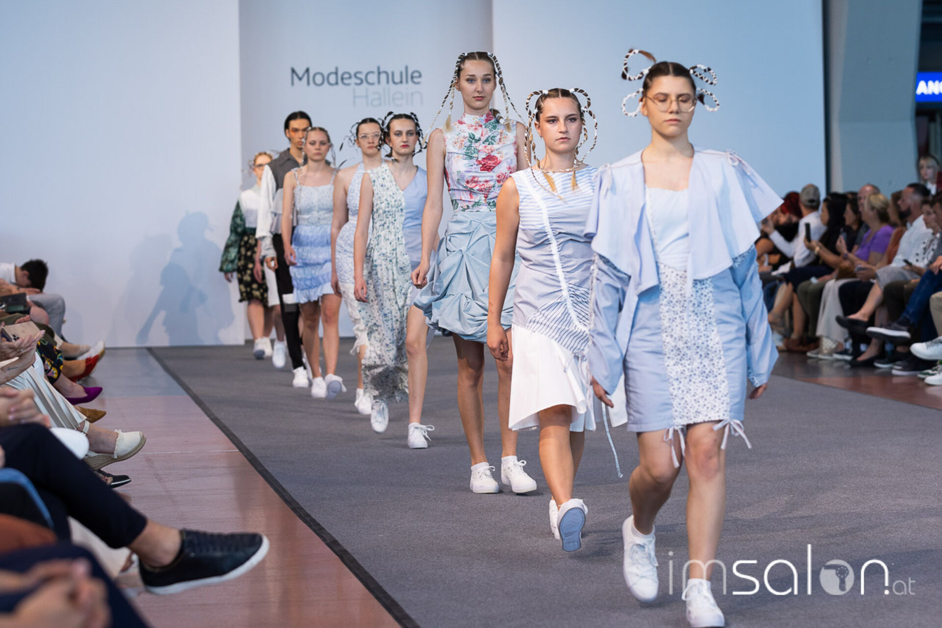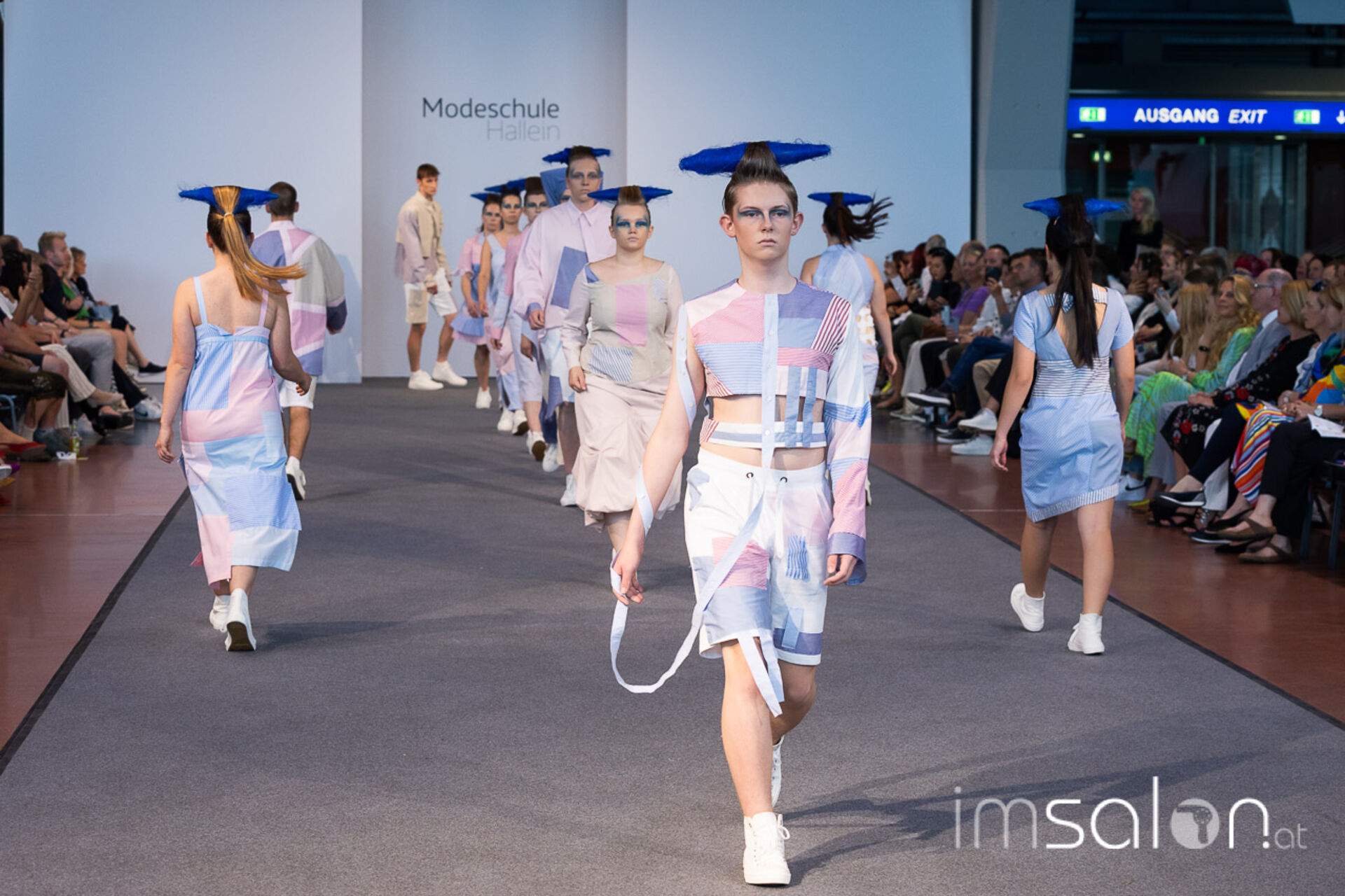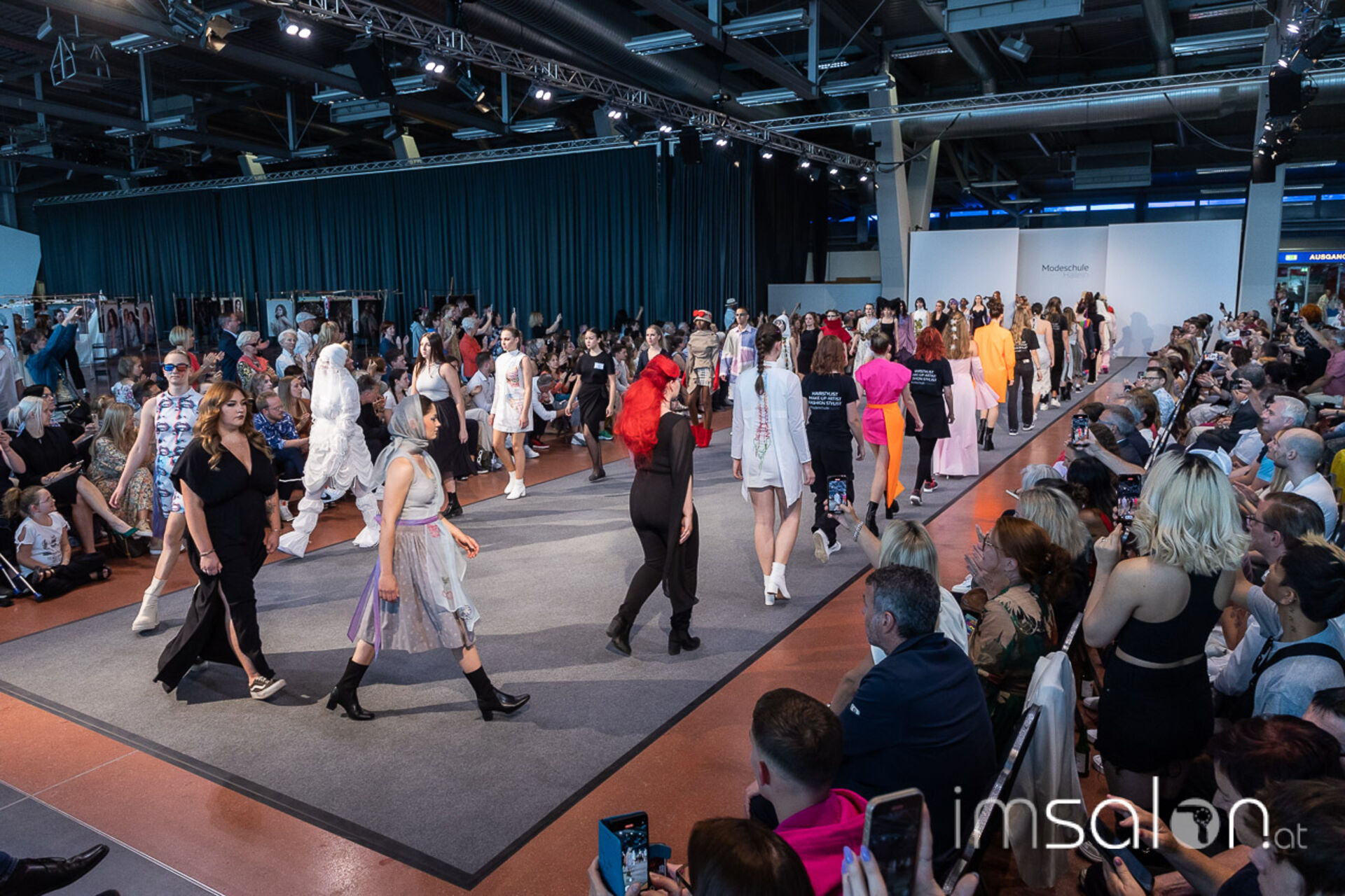 Bei der großen Fashion Show im Terminal 2 des Salzburger Flughafens präsentierten die Nachwuchsdesigner*innen der Modeschule Hallein ihre Kollektionen. Dabei wurden sie von den Schüerinnen und Schülern des Hairstylung, Make-up & Visagisten Zweiges unterstützt, die das gesamte Styling der Modelle von der Frisur bis zum Make-up übernahmen.