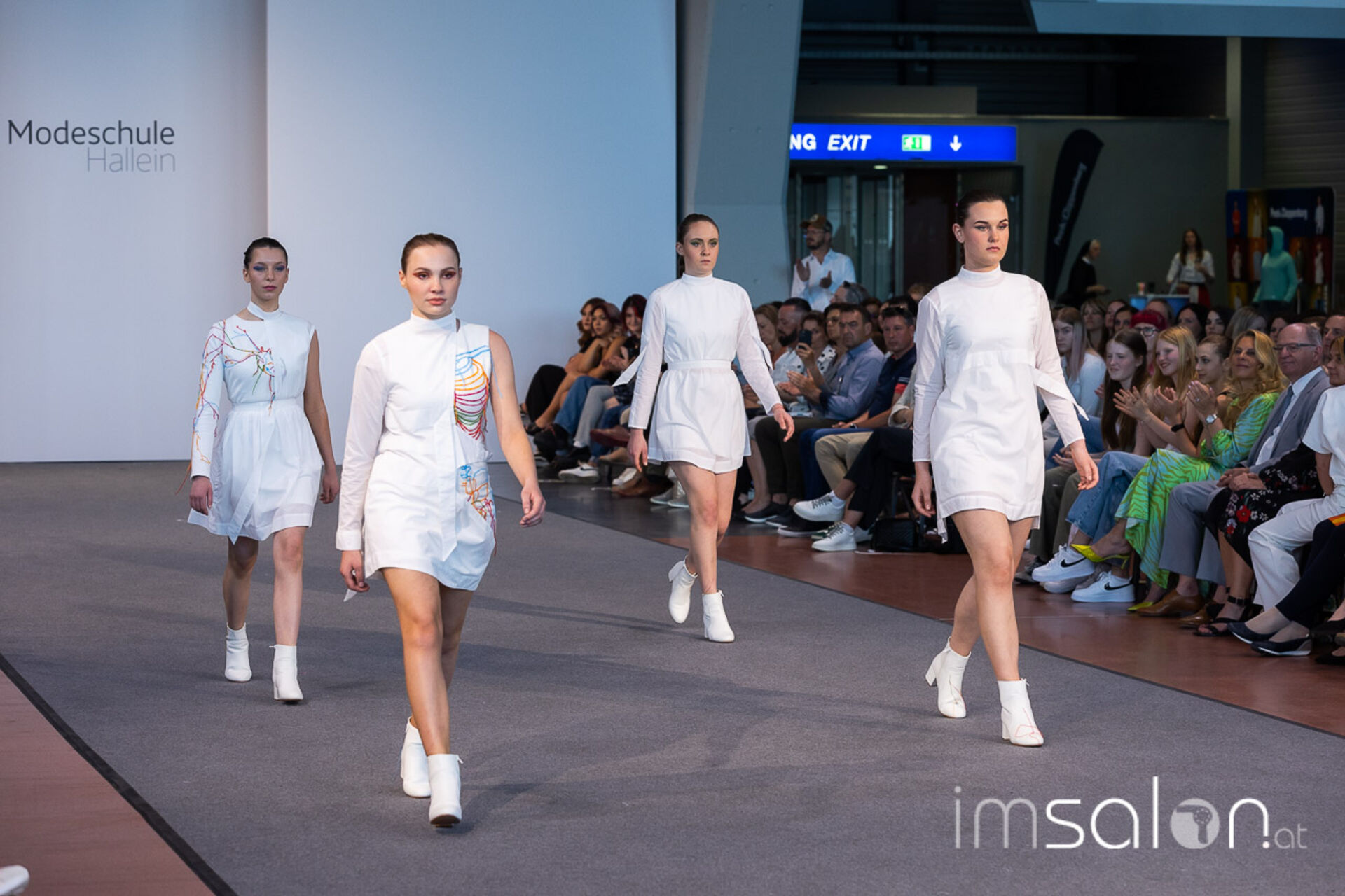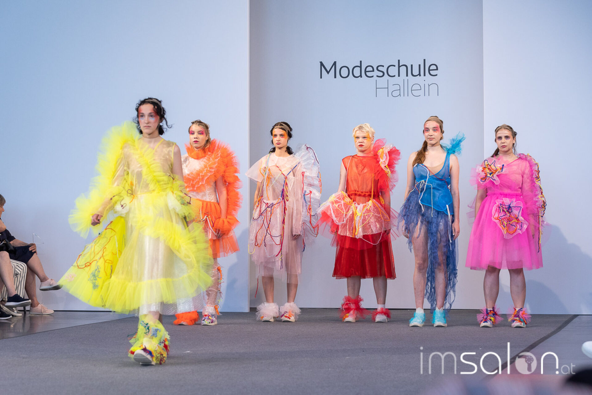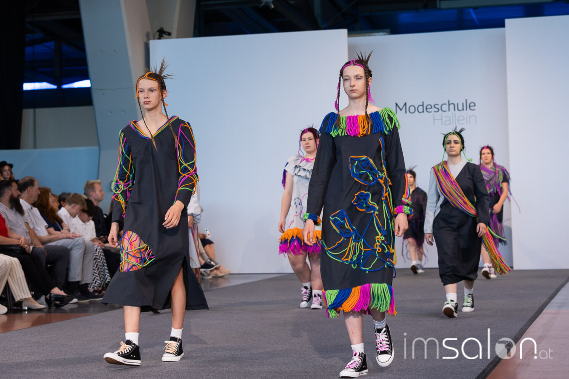 Bei der großen Fashion Show im Terminal 2 des Salzburger Flughafens präsentierten die Nachwuchsdesigner*innen der Modeschule Hallein ihre Kollektionen. Dabei wurden sie von den Schüerinnen und Schülern des Hairstylung, Make-up & Visagisten Zweiges unterstützt, die das gesamte Styling der Modelle von der Frisur bis zum Make-up übernahmen.