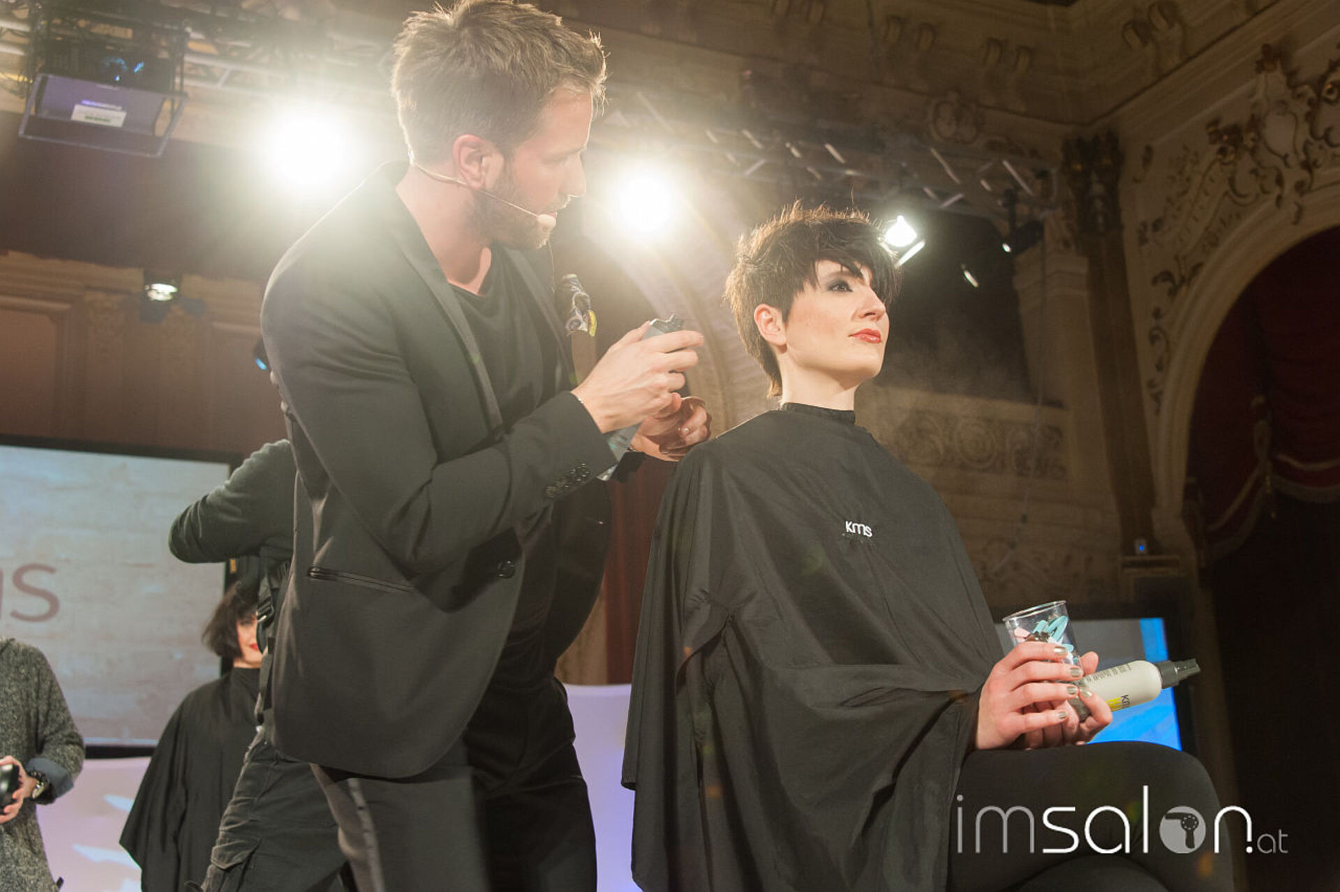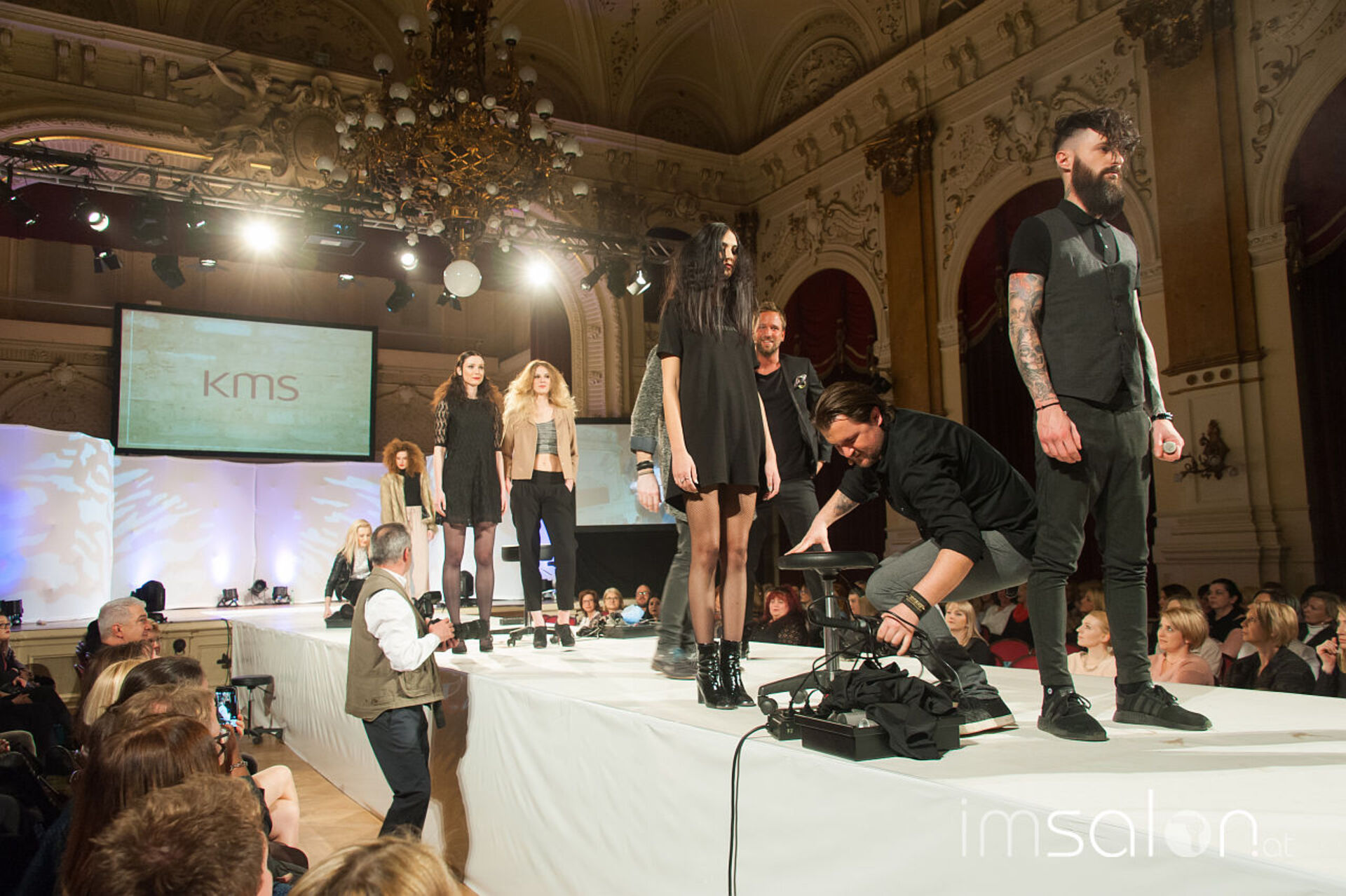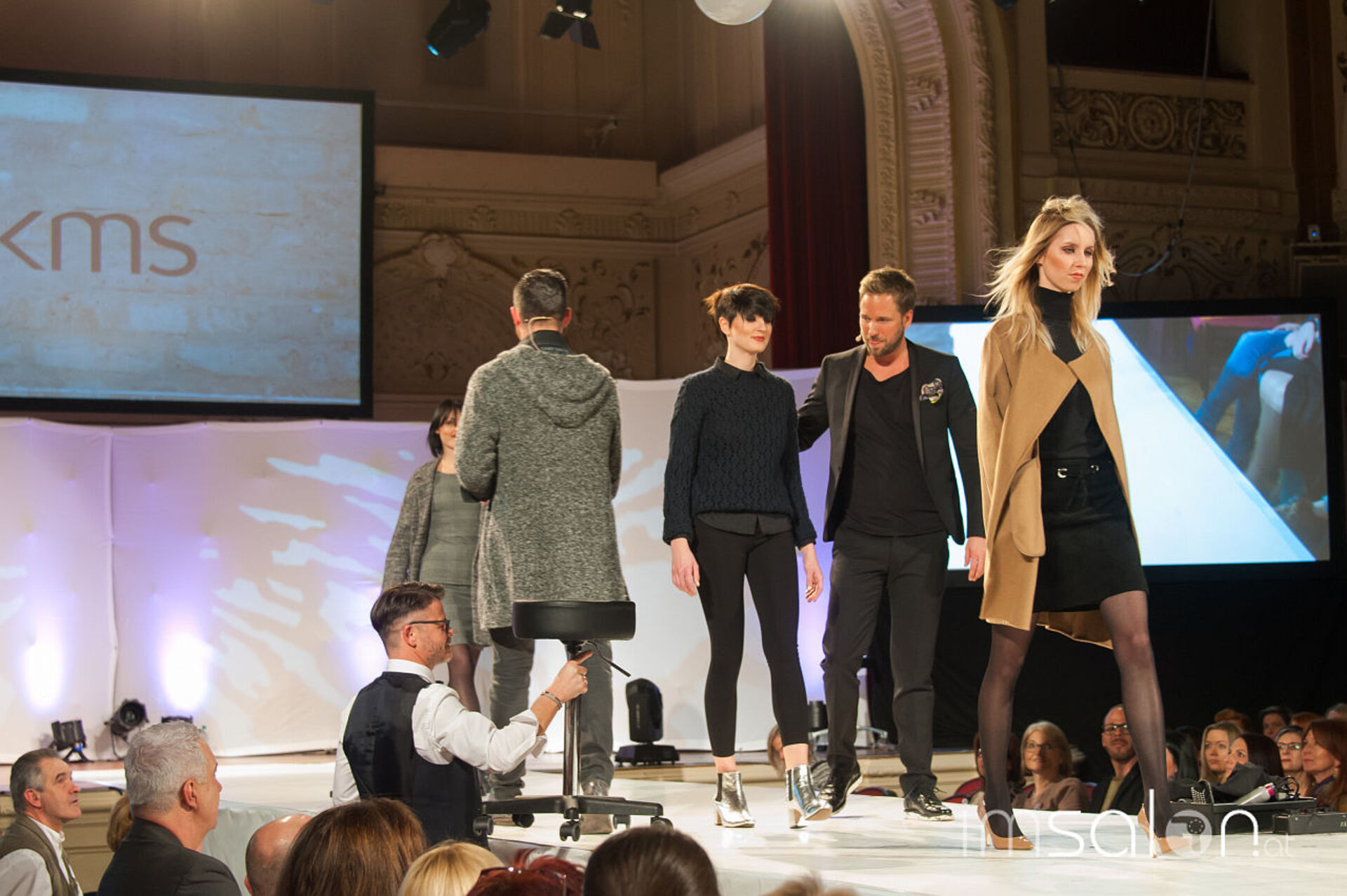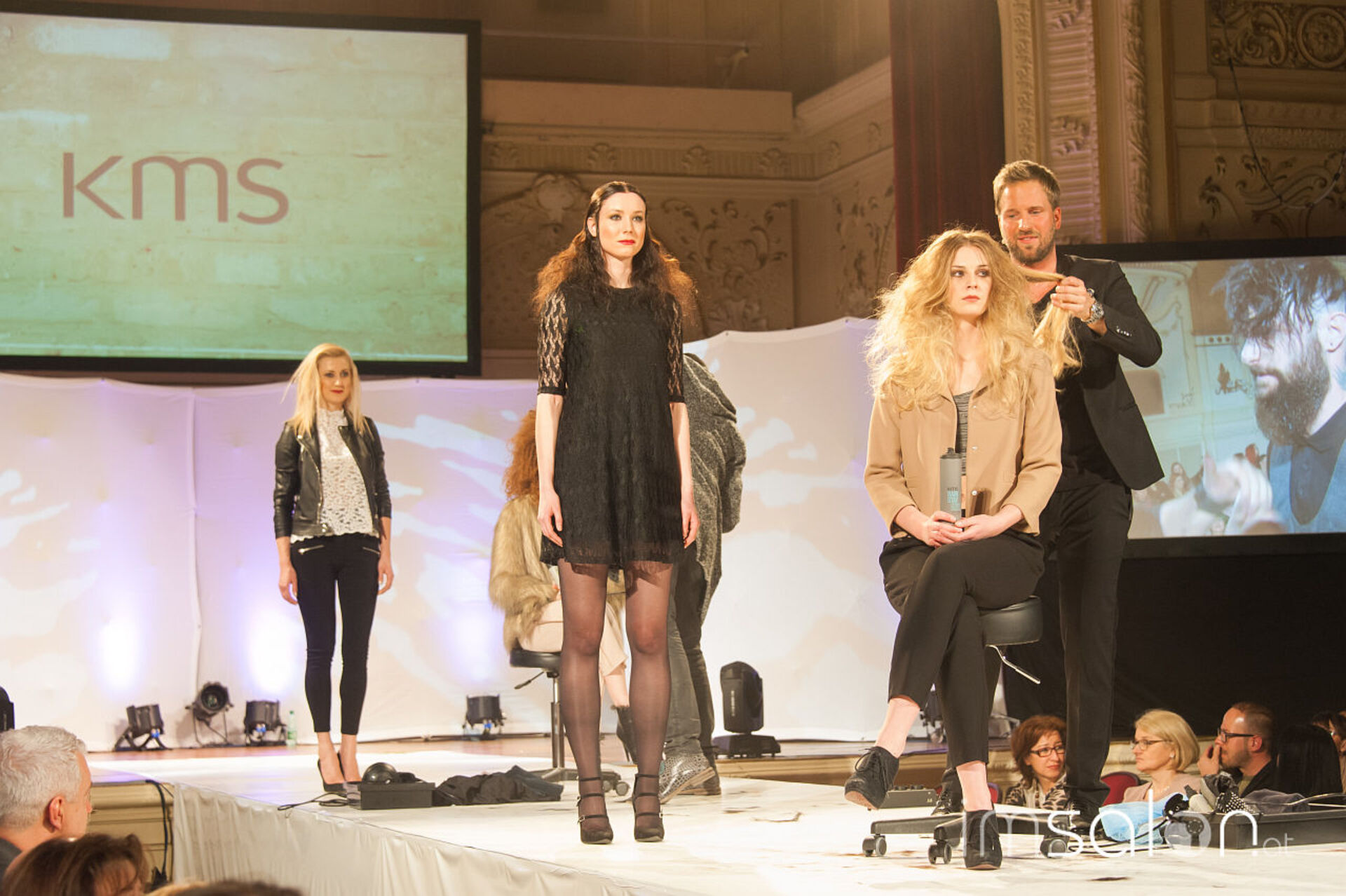 Simon Auer und seine deutschen Kollegen Robert Mrosek und Oliver Müller schneiden, stylen und mixen sich durch die neue Produkt-Palette von KMS bei der Hair is your Life 2017 im Palais Kaufmännischer Verein. Was entstehen sind schöne Looks; frisch, identisch, cosmopolitisch.