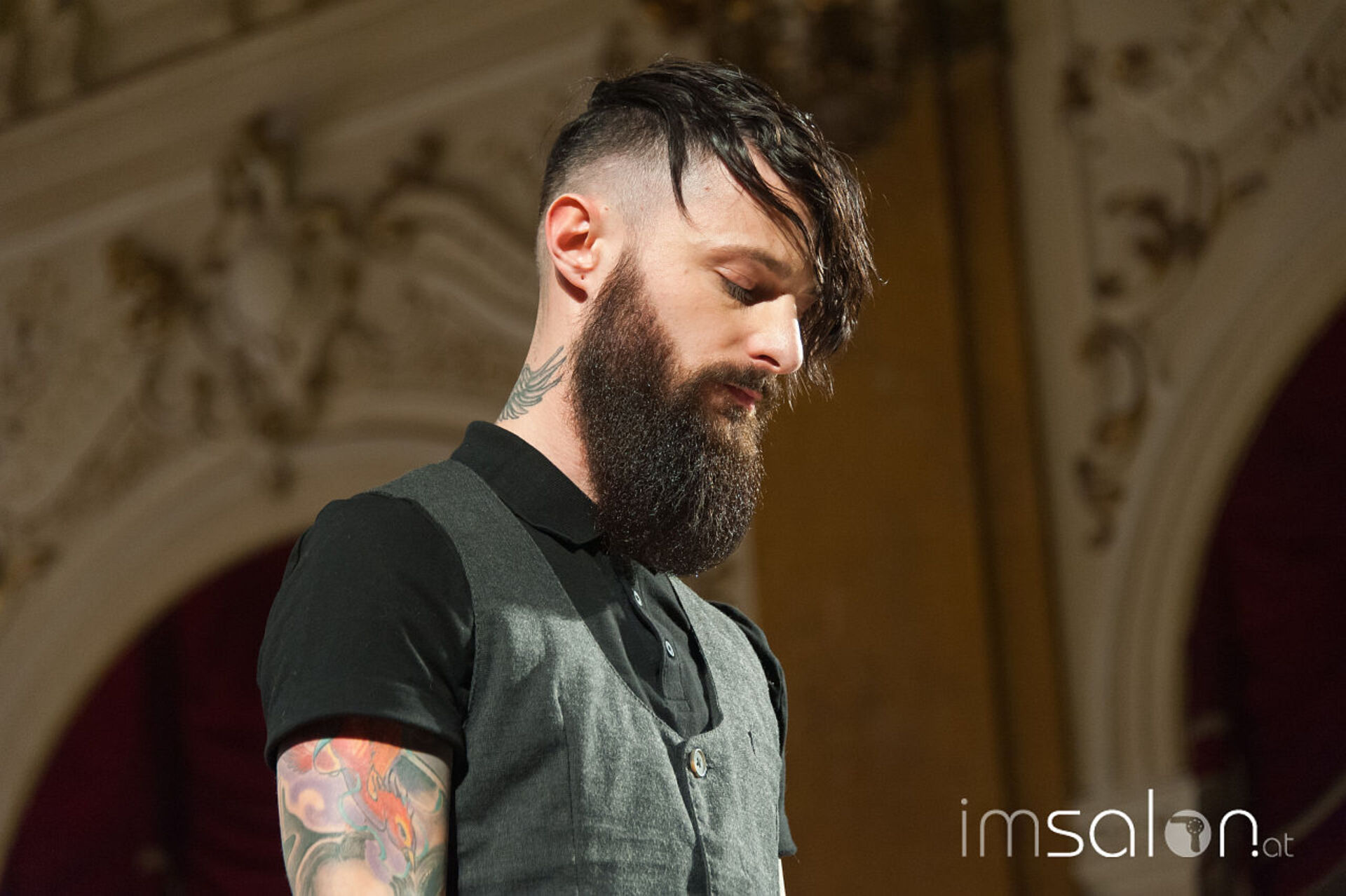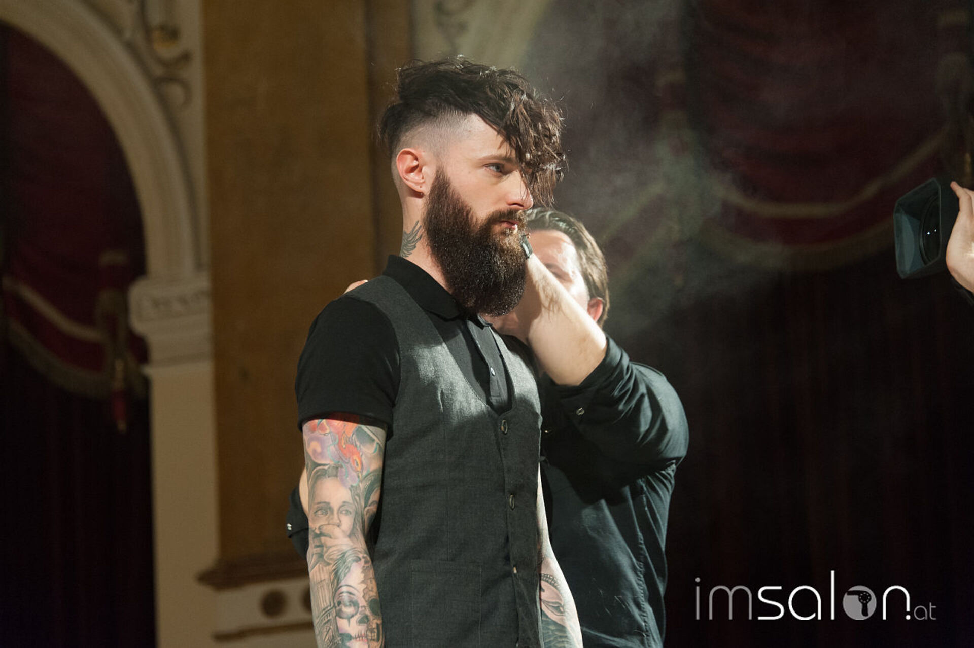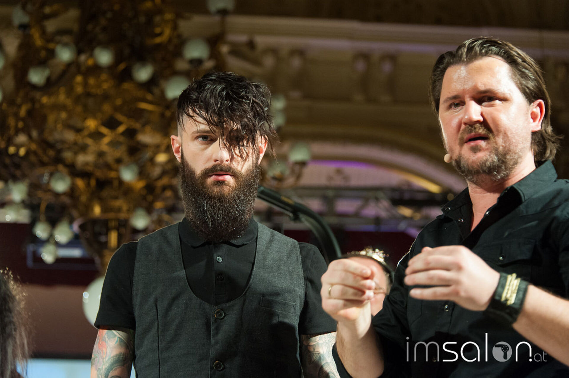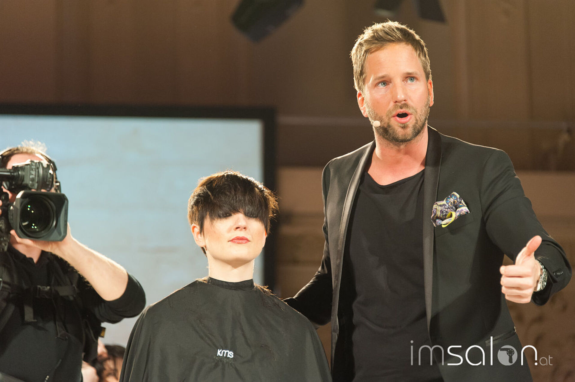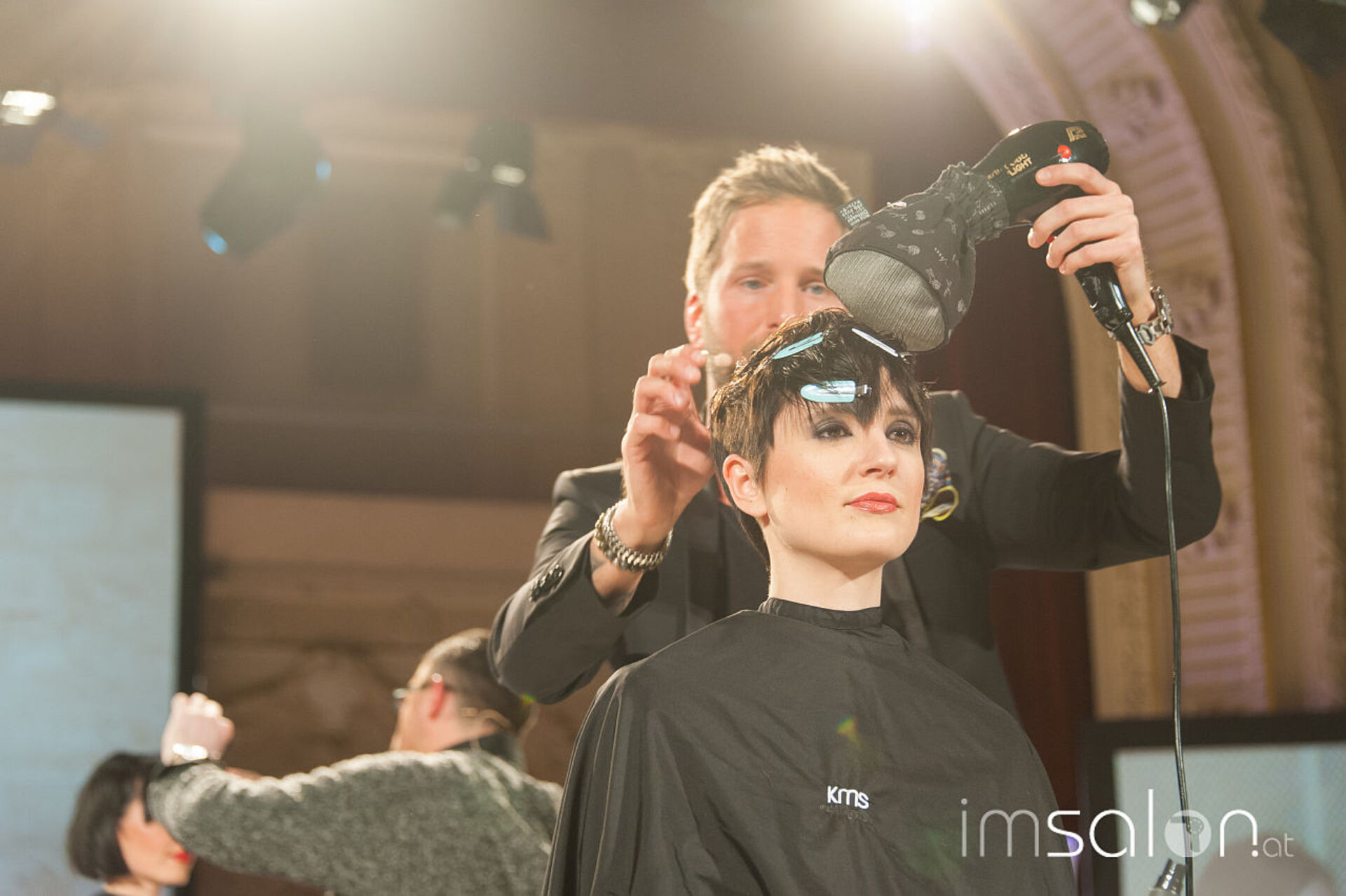 Simon Auer und seine deutschen Kollegen Robert Mrosek und Oliver Müller schneiden, stylen und mixen sich durch die neue Produkt-Palette von KMS bei der Hair is your Life 2017 im Palais Kaufmännischer Verein. Was entstehen sind schöne Looks; frisch, identisch, cosmopolitisch.