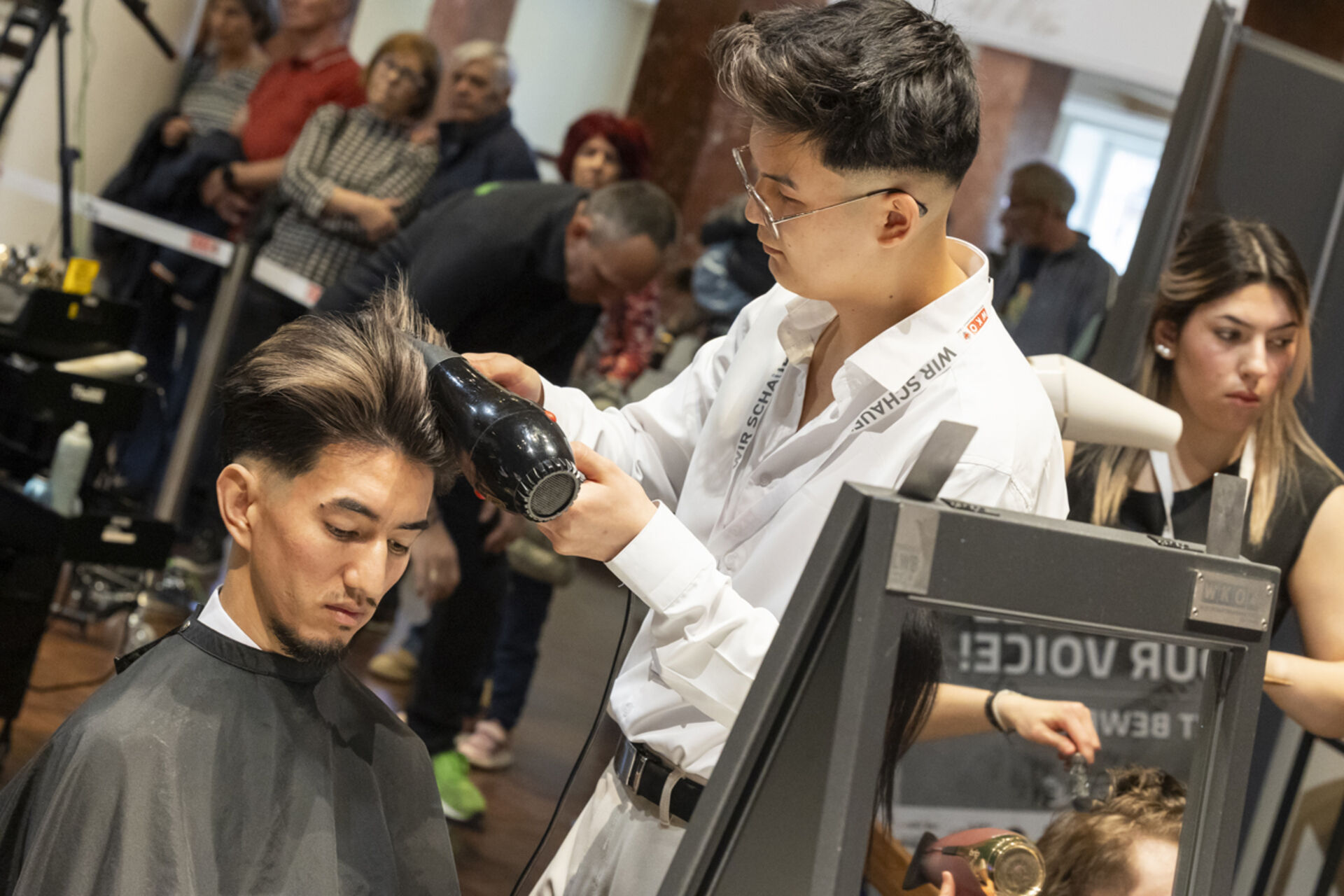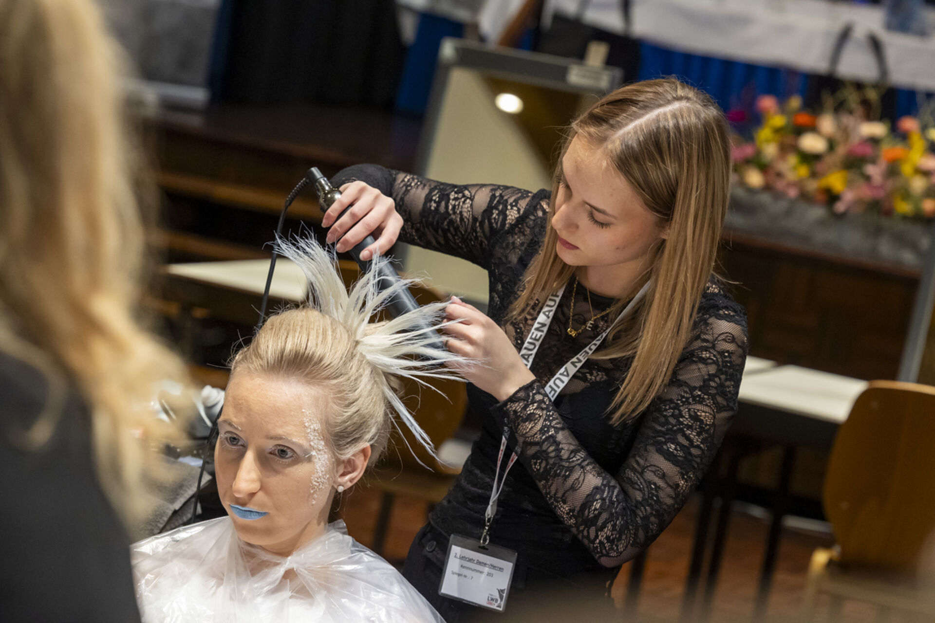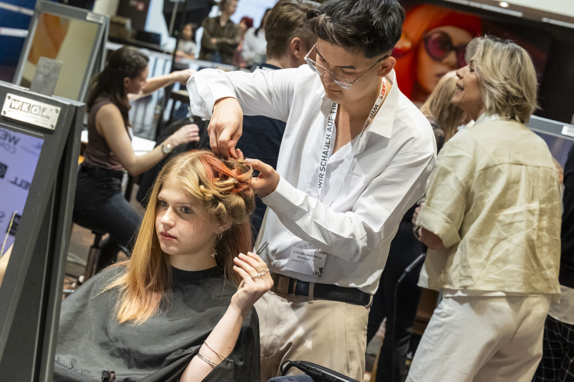 Innungsgeschäftsführerin Dr. Karolina Holaus und Landesinnungsmeister Clemens Happ und hießen die Nachwuchstalente im Kurhaus Hall willkommen, die in allen drei Lehrjahren konzentriert ihre Looks erstellten - und das unter den Augen der fachkundigen Jury (Vorsitz: Thomas Maresch) sowie der interessierten Zuschauerinnen und Zuschauer, Familienmitglieder, Freunde und Ausbilderinnen und Ausbildern.