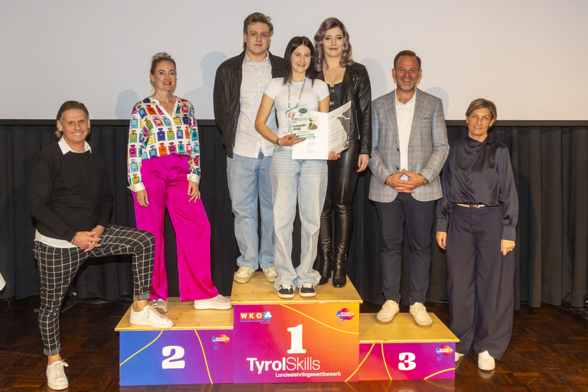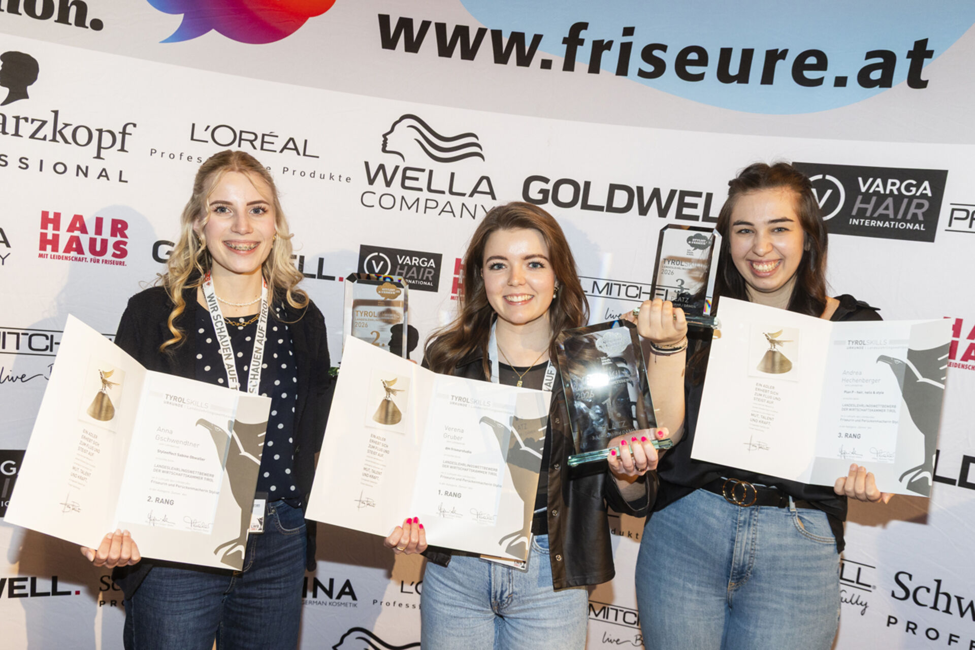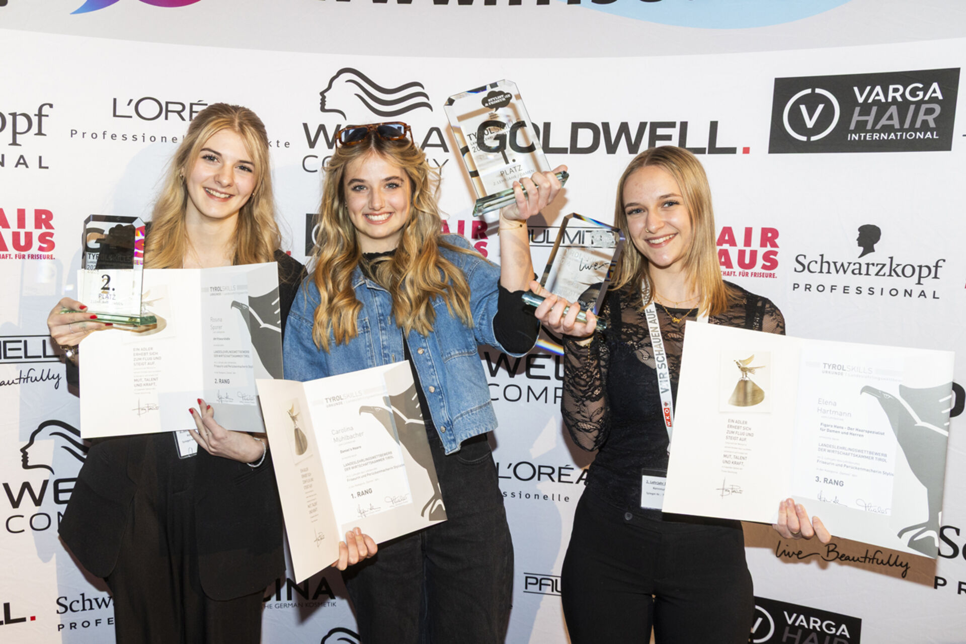 Den Landessieg im 3. Lehrjahr – und damit den Titel „Tirols bester Friseurlehrling“ – sicherte sich Verena Gruber aus Aschau im Zillertal. Die Nachwuchsstylistin absolviert ihre Lehre bei dm friseurstudio. Platz zwei ging an Andrea Hechenberger aus Jochberg, Platz drei an Anna Gschwendtner aus Going.