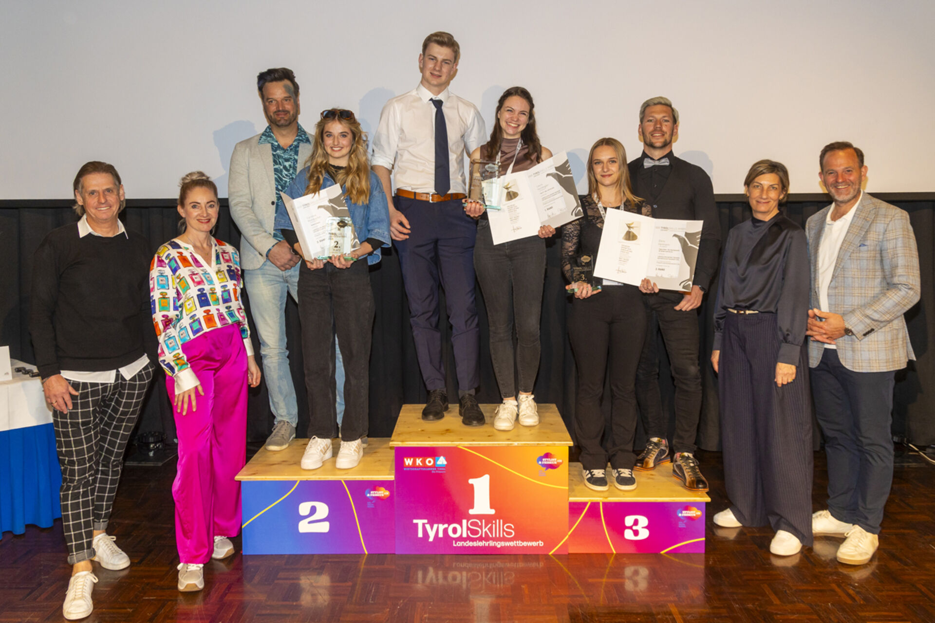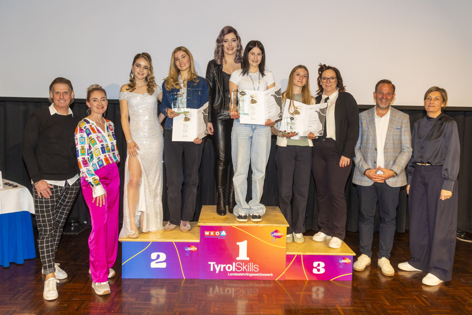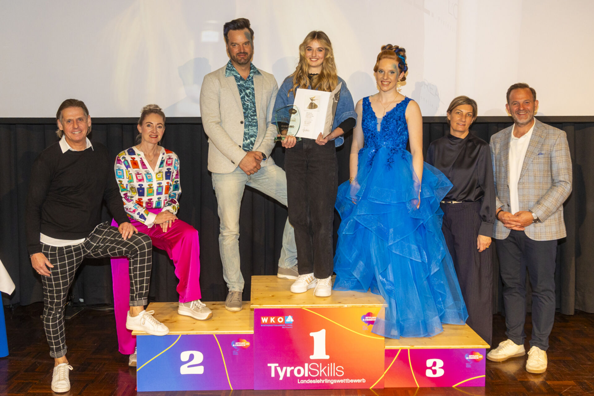 Den Landessieg im 3. Lehrjahr – und damit den Titel „Tirols bester Friseurlehrling“ – sicherte sich Verena Gruber aus Aschau im Zillertal. Die Nachwuchsstylistin absolviert ihre Lehre bei dm friseurstudio. Platz zwei ging an Andrea Hechenberger aus Jochberg, Platz drei an Anna Gschwendtner aus Going.