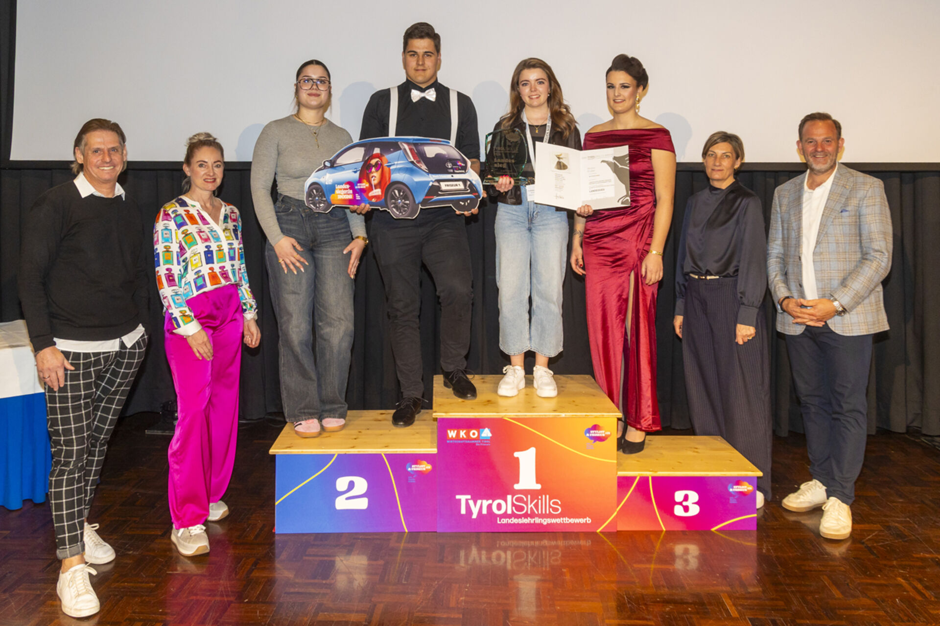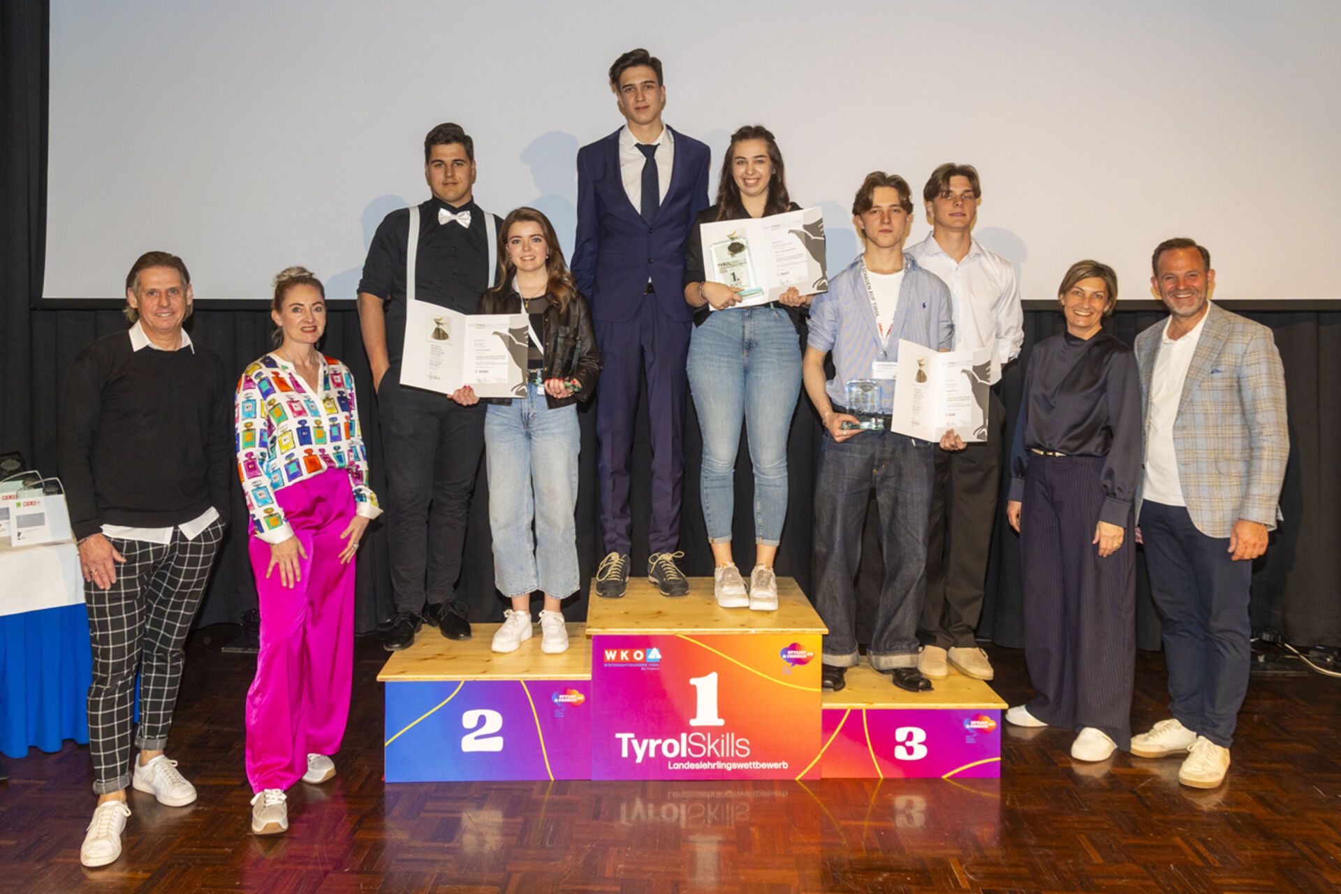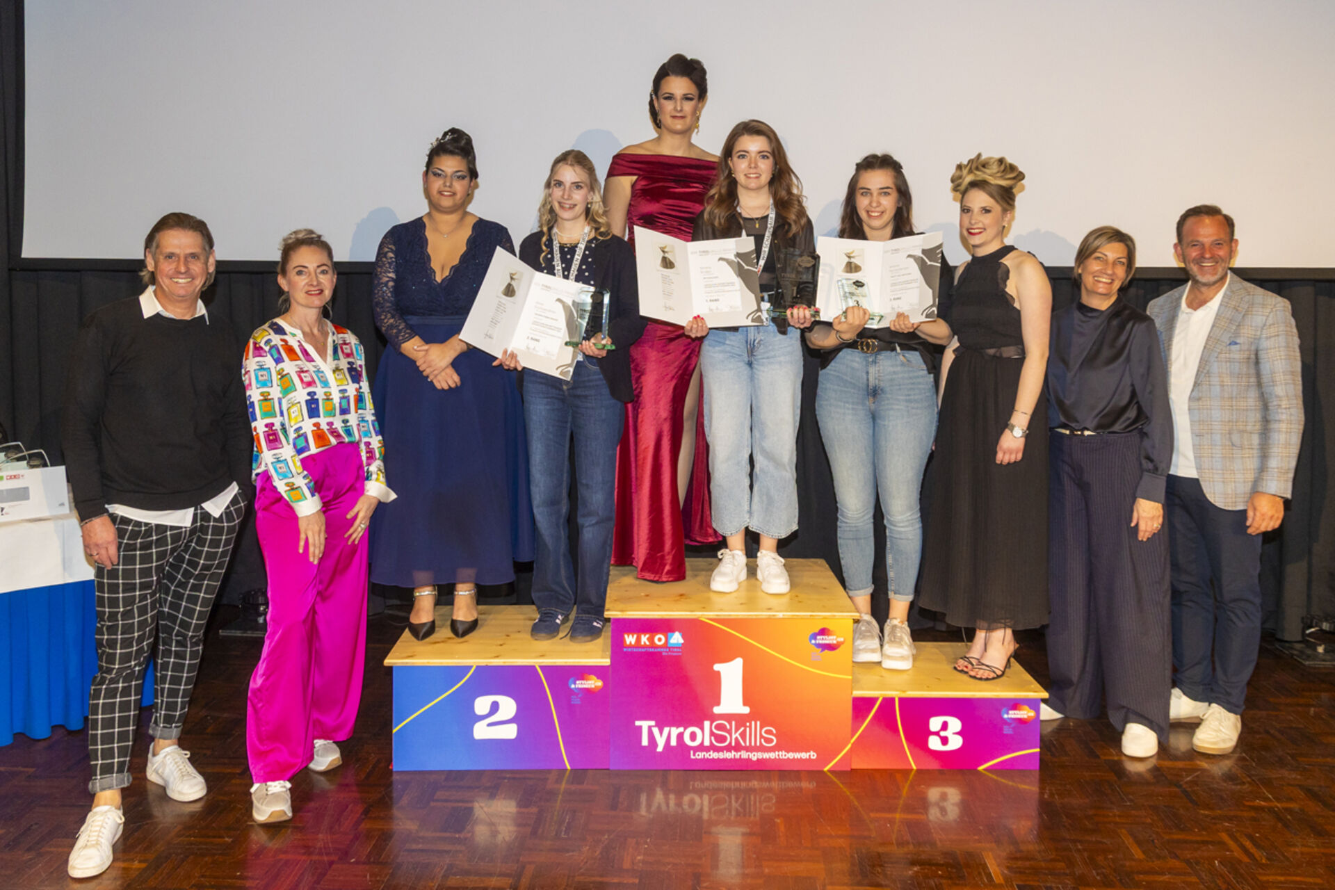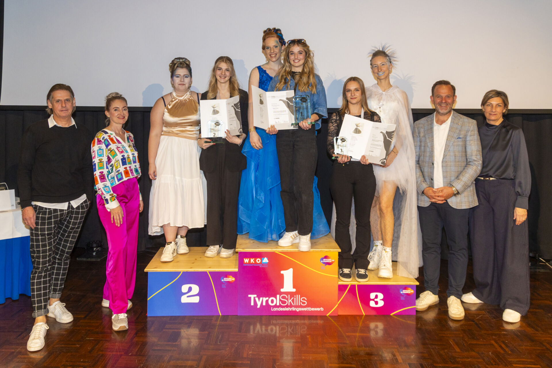Im 2. Lehrjahr überzeugte Carolina Mühlbacher aus Fügen und holte sich den Sieg. Laura Hochkogler aus Kirchberg erreichte Platz zwei, über Platz drei freuten sich ex aequo Elena Hartmann aus Tulfes und Rosina Sporer aus Schwendau.