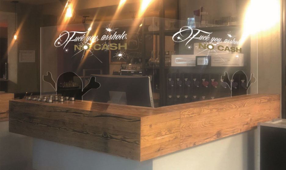 MJ: Ich liebe Branding! Die ganzen Hygienemaßnahmen verpacke ich so, dass im besten Fall darüber gesprochen wird. An der Rezeption tragen die Plexiglasscheiben die Aufschrift „Fuck you asshole - NO CASH“ und sehen so aus, als hätten sie gerade einen Banküberfall überstanden. Jeder Kunde bekommt zum Empfang im Salon ein Kunden-Kit mit gebrandetem Mundschutz, Desinfektionstüchern und Handschuhen. Jetzt muss es nur noch losgehen!