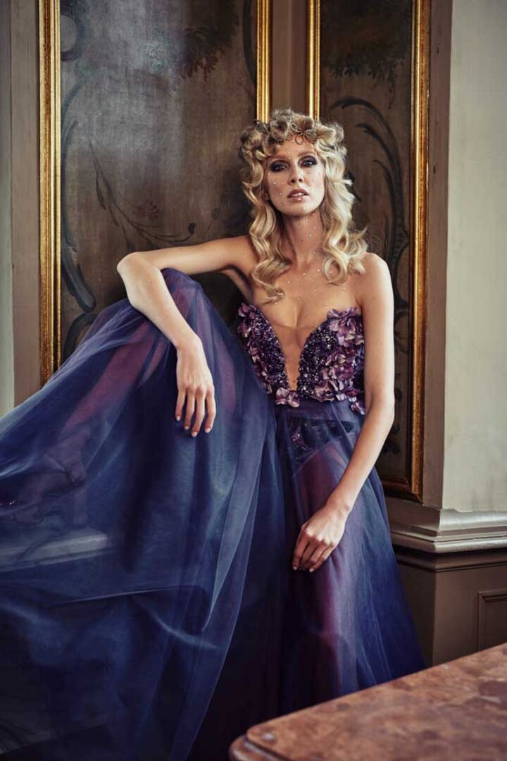 Den Film hat Mario Krankl zusammen mit dem aufstrebenden Filmemacher Daniel Ronacher von Solidshot umgesetzt. Nun folgt der erste Teil der zweiteiligen Fotokollektion aus „Garland & Tinsel“ mit einer Märchenkulisse, der schon Karl Lagerfeld und Chanel nicht widerstehen konnten: das Schloss Leopoldkron in Salzburg. Mario Krankl ist bekannt für seine opulenten Inszenierungen, die ausgehend von den Haaren ein faszinierendes Gesamtbild ergeben. Wer könnte da den „Highfashion Hausherrn“ besser verkörpern als der großartige Make-up-Artist von Björk und selbst Instagram Star @Isshehungry? Die Haute Couture Kleider stammen vom österreichischen Designer-Shootingstar Eva Poleschinksi, deren opulente Red Carpet Roben perfekt in die traumhafte Kulisse passten. Für das Make-up zeigte sich Eva Hauswirth verantwortlich. Mit Friedrich Hauswirth als Director of Photography hatte Krankl ein hochkarätiges Team an seiner Seite.