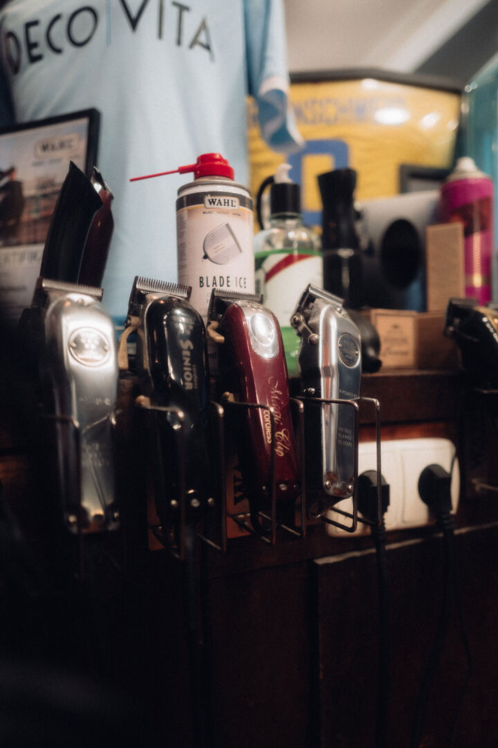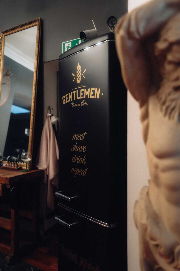 Gentlemen Barber Clubs ist wie ein Zuhause für die Kunden. Vor Corona war der Eintritt in den Salon noch etwas persönlicher: die Kunden kommen an, hängen ihre Jacke selbst auf und begrüßen jeden per Handschlag, auch die anderen Kunden. Dann geht man zum Kühlschrank, nimmt sich ein Bier oder einen Jägermeister und zündet sich eine Zigarette an. Rauchfrei ist nicht, wer den Rauch nicht mag, der ist hier fehl am Platz, denn GBC ist ein Rauchersalon.