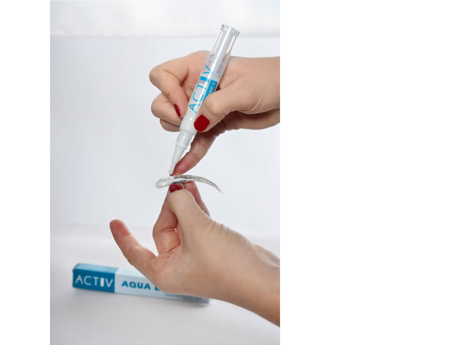 Step 3| Aufbringen des Spezialklebers Activ Aqua Bond 3 auf die Rückseite der Transparentfolie. Der Kleber sorgt für besonders lange Haltbarkeit.
