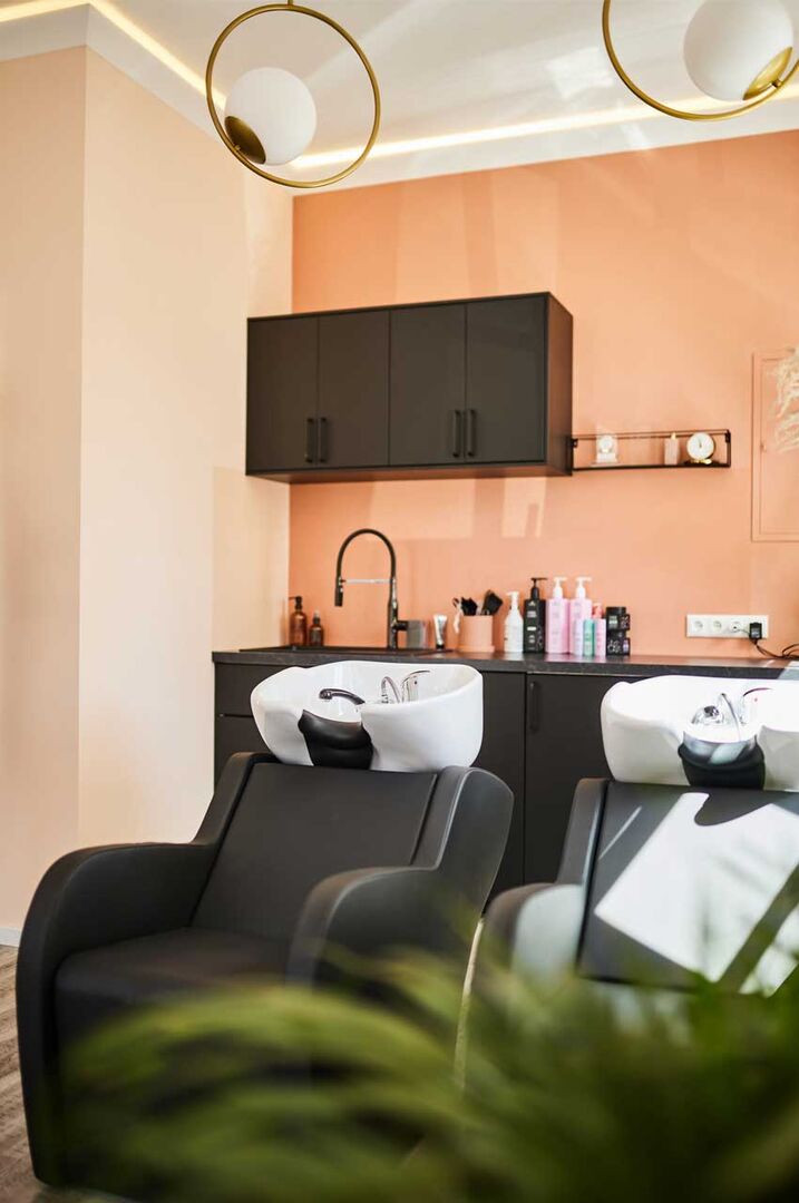 Entspannte Ästhetik, sanfte erdige Töne wie Terracotta und auch Peach sowie natürliche Materialien wurden hier mühelos nebeneinander gestellt und führen gleichzeitig zu einladenden Räumen. Dieses Wohlgefühl umhüllt einen schon beim Betreten des Salons und zieht sich durch alle Bereiche und Behandlungsräume.
