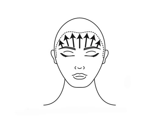 Step 7| Mit Mittel- und Ringfinger oberhalb der Augenbrauen über den vorderen Haaransatz zum höchsten Punkt ausstreichen