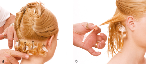Step 3|4 Im Nacken beginnend einzelne Strähnen papilottieren.