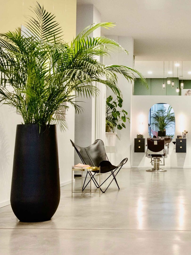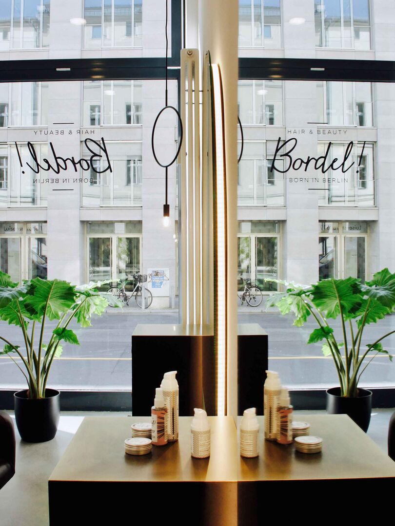 Japandi-Stil mitten in Berlin. Der neue Salon Bordel tritt mit schlichtem reduziertem aber trotzdem warmen, einladenden Interieur auf. Die schwarzen Elemente und organische Formen, die in Salon-Stühlen, Lampenformen, großen Vasen und ovalen Spiegeln zu finden sind, repräsentieren den Japan-Elemente.