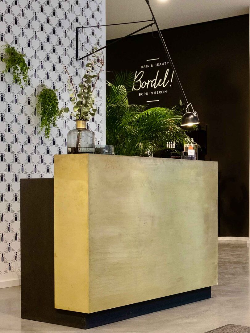 Besonders beeindruckend wurde die Rezeption in Szene gesetzt: Ein massiver Stein in Gold wird zu einem eigenen Highlight. Daneben ist der Slogan von Bordel! an der schwarzen Wand gut erkennbar golden geschrieben: Bordel! Born in Berlin und repräsentiert das, wofür Berlin einfach steht: Inspiration pur.