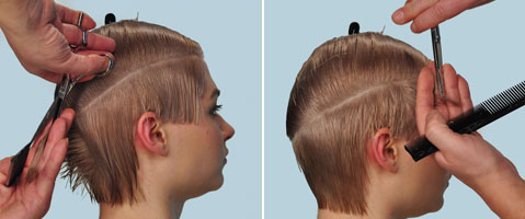 Step 4-7 | Der zweite Abstufungsbereich wird genau mit der Technik des unteren Bereiches geschnitten.