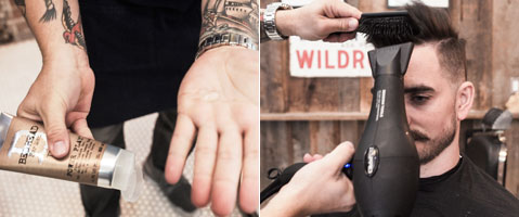 Step 2| Power Play auf die Handflächen auftragen und mit den Fingern im Haar verteilen. Die Haare trocken föhnen und mit einer Bürste den vorderen Bereich aus dem Gesicht arbeiten, um an Form und Höhe zu gewinnen.