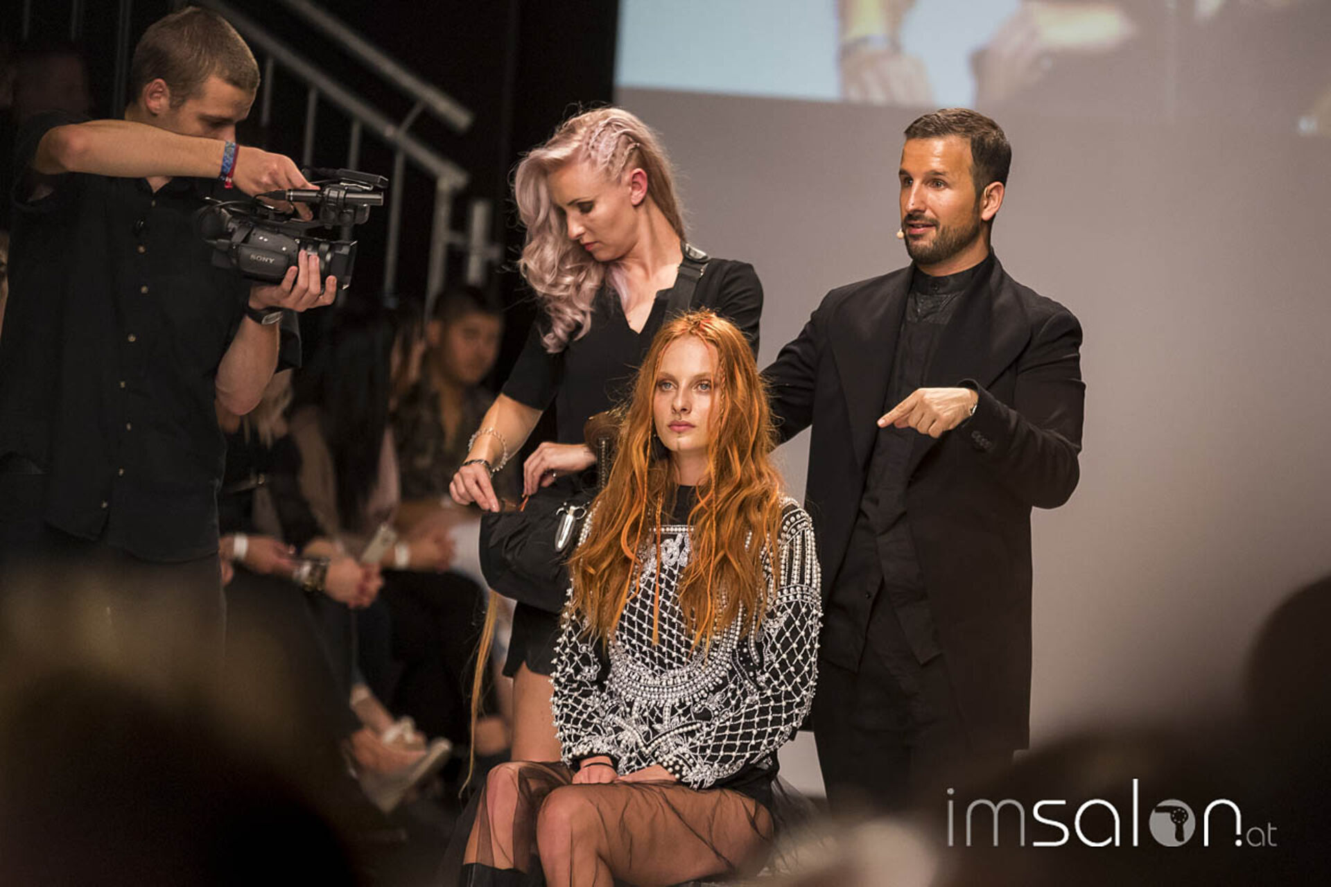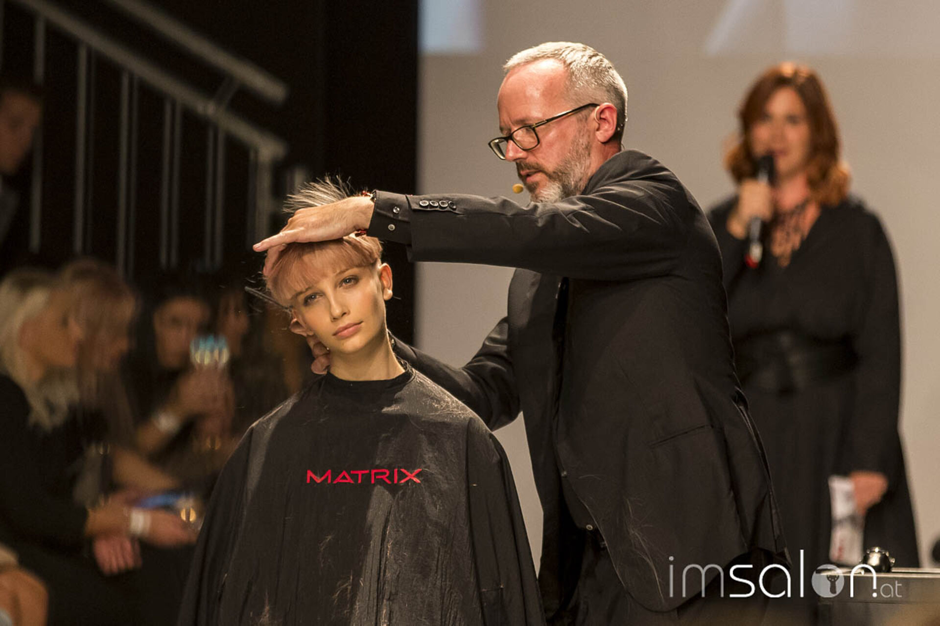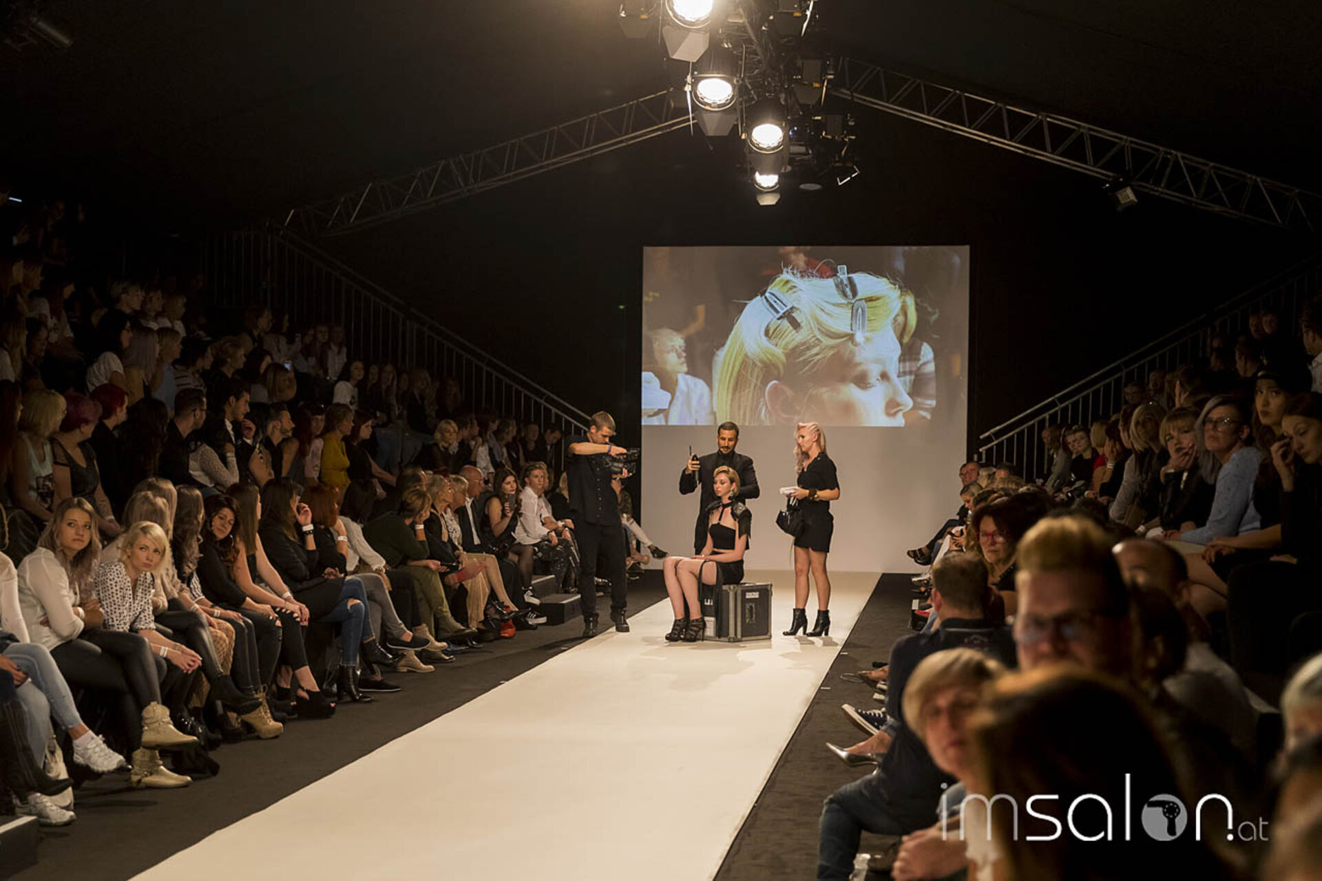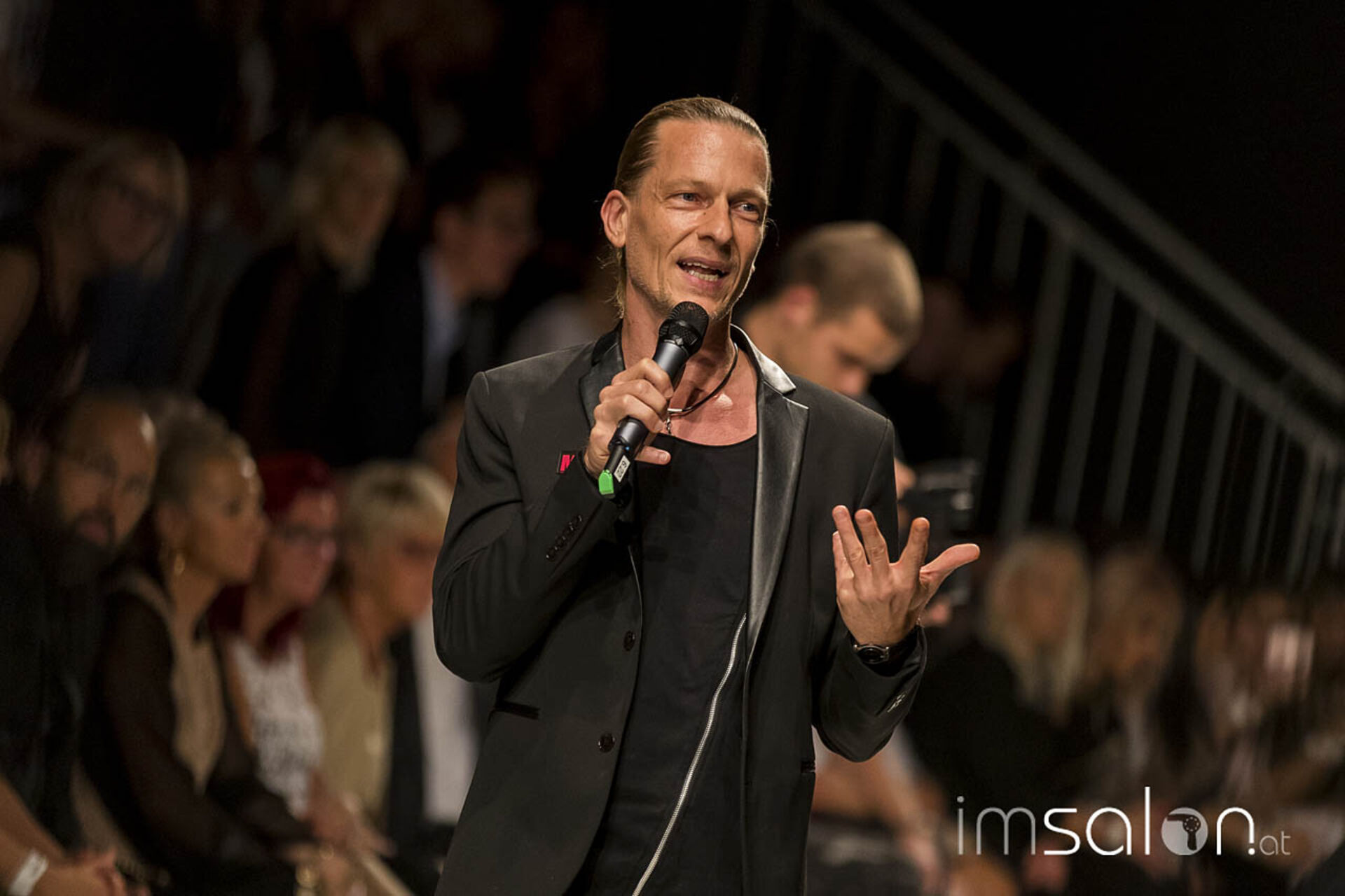 "Kundinnen wollen nach dem Friseurbesuch immer gerne anders aussehen, aber dennoch nichts verändern, ja nicht mehr als Spitzen abschneiden... Wer kennt das?", begann Marco Arena seine Show. Die Hände der anwesenden StylistInnen gingen auf der Stelle nach oben - im gesamten Fashion-Zelt.