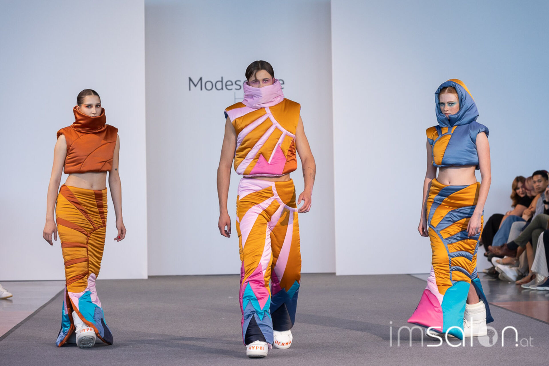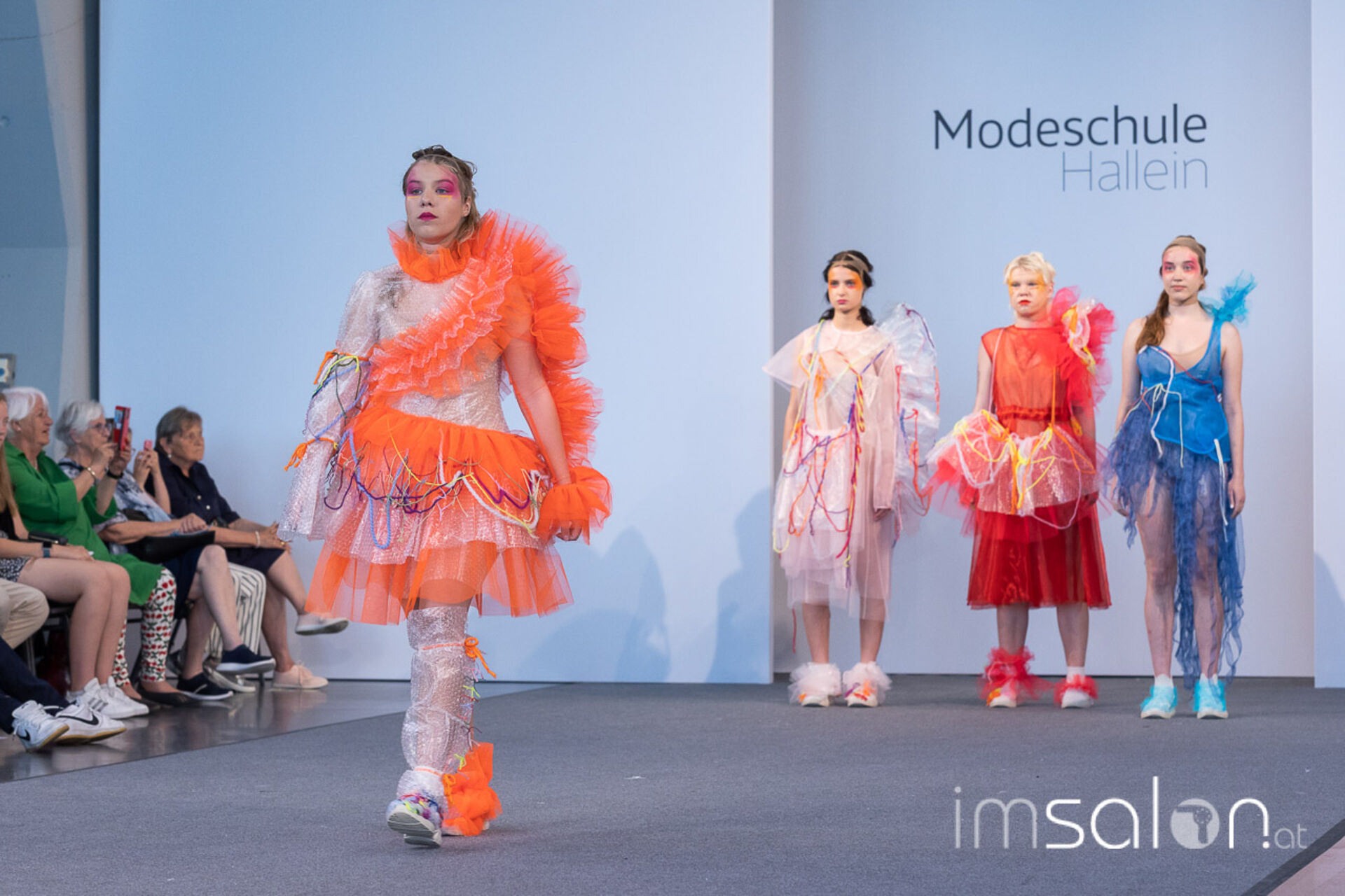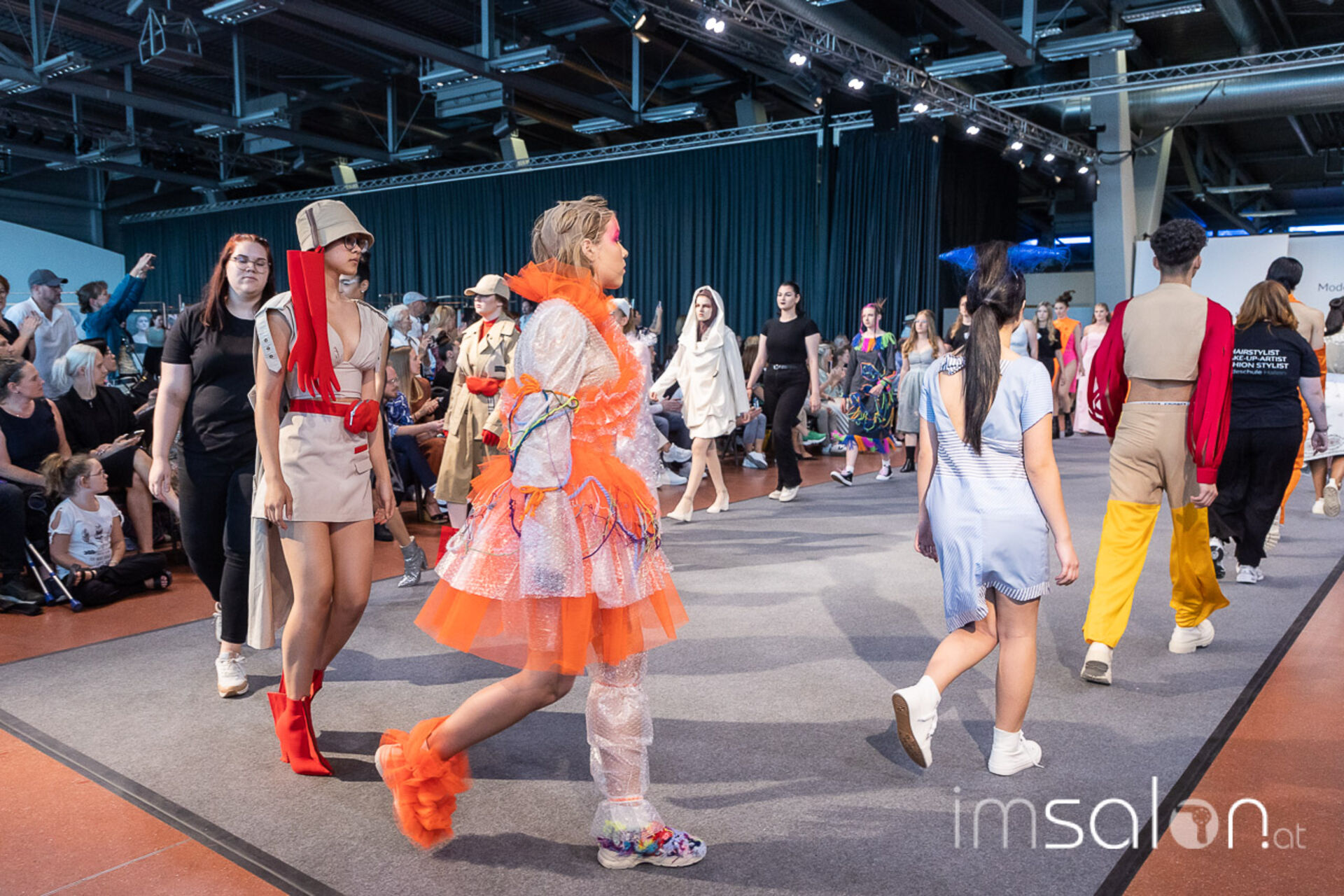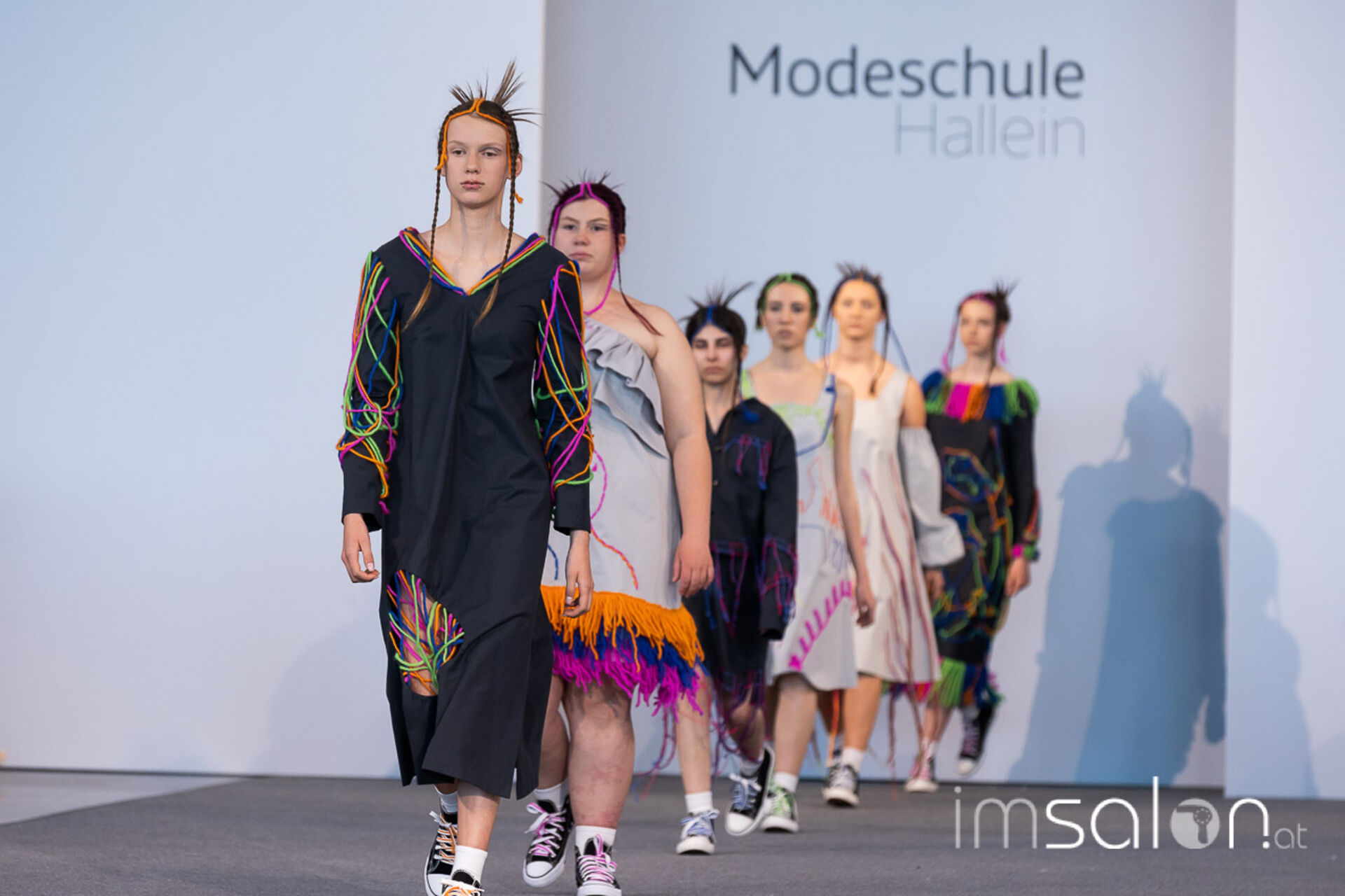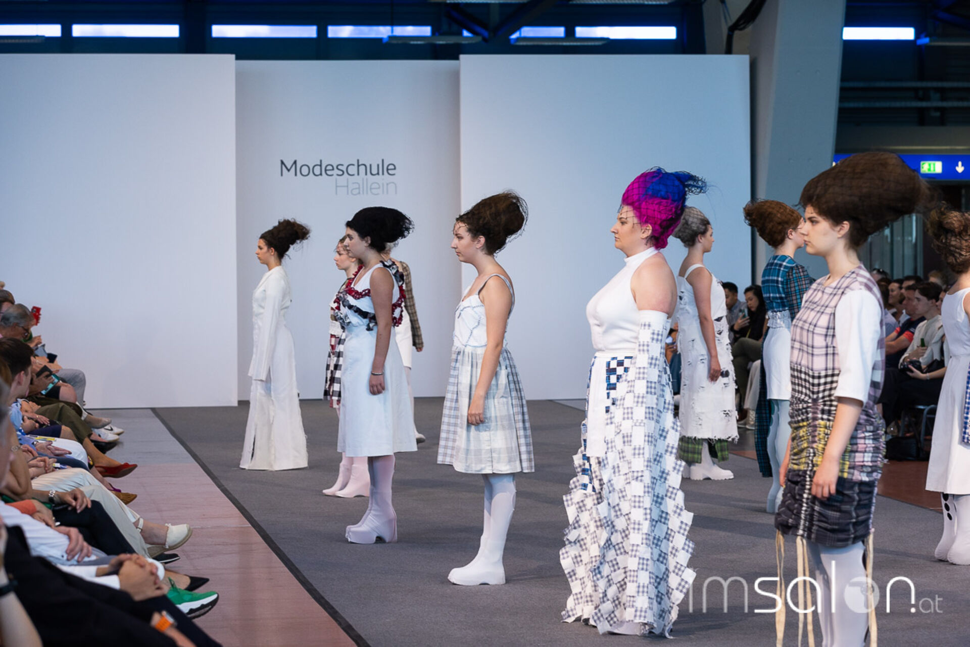 Bei der großen Fashion Show im Terminal 2 des Salzburger Flughafens präsentierten die Nachwuchsdesigner*innen der Modeschule Hallein ihre Kollektionen. Dabei wurden sie von den Schüerinnen und Schülern des Hairstylung, Make-up & Visagisten Zweiges unterstützt, die das gesamte Styling der Modelle von der Frisur bis zum Make-up übernahmen.