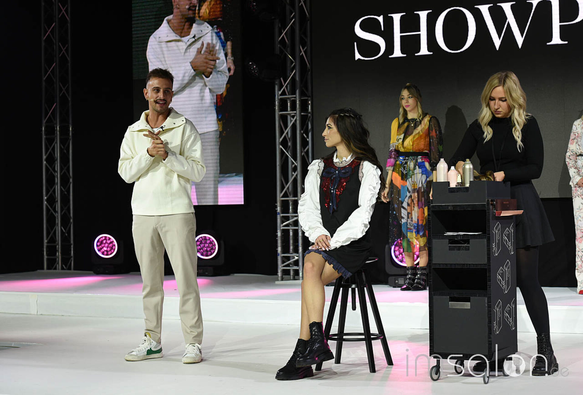 Showponys Master Extensionist Jake Williams reiste mit jeder Menge Tipps rund um das Thema Haar-Verlängerungen nach Wien. So zeigte er bei kurzem schulterlangem Haar das Anbringen von diagonal gesetzten Extensions, um ein Hochstecken zu ermöglichen, ohne Haarteile unschön hervorblitzen zu lassen.