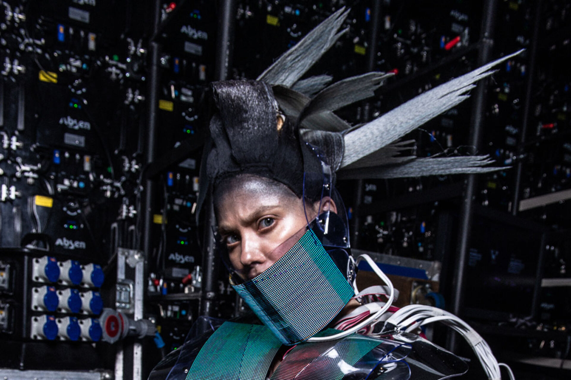 Futuristisches Eventhighlight: 7 Models in Jiv D’s Designer Collection von individuellen futuristischen Haarinterpretationen untermalt.